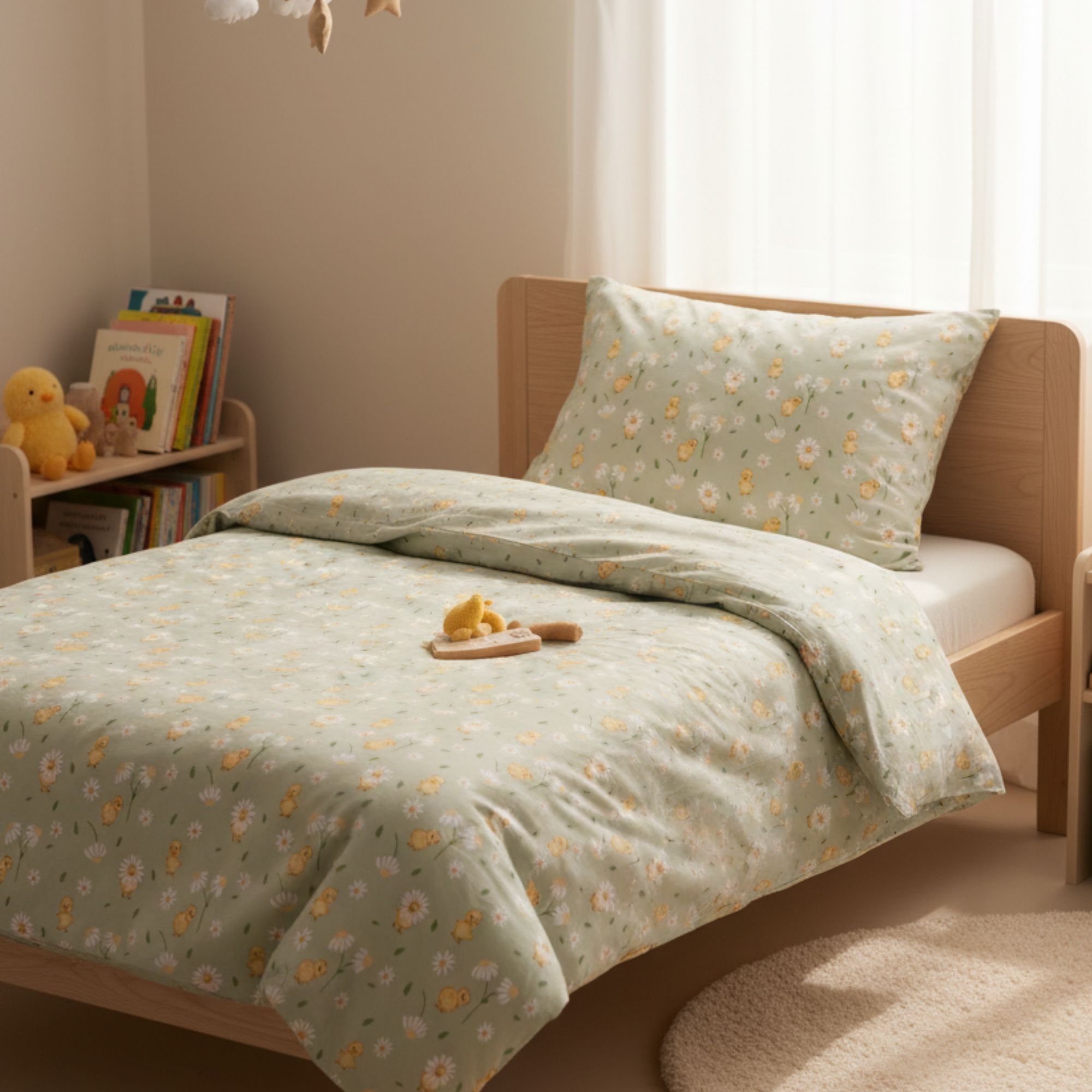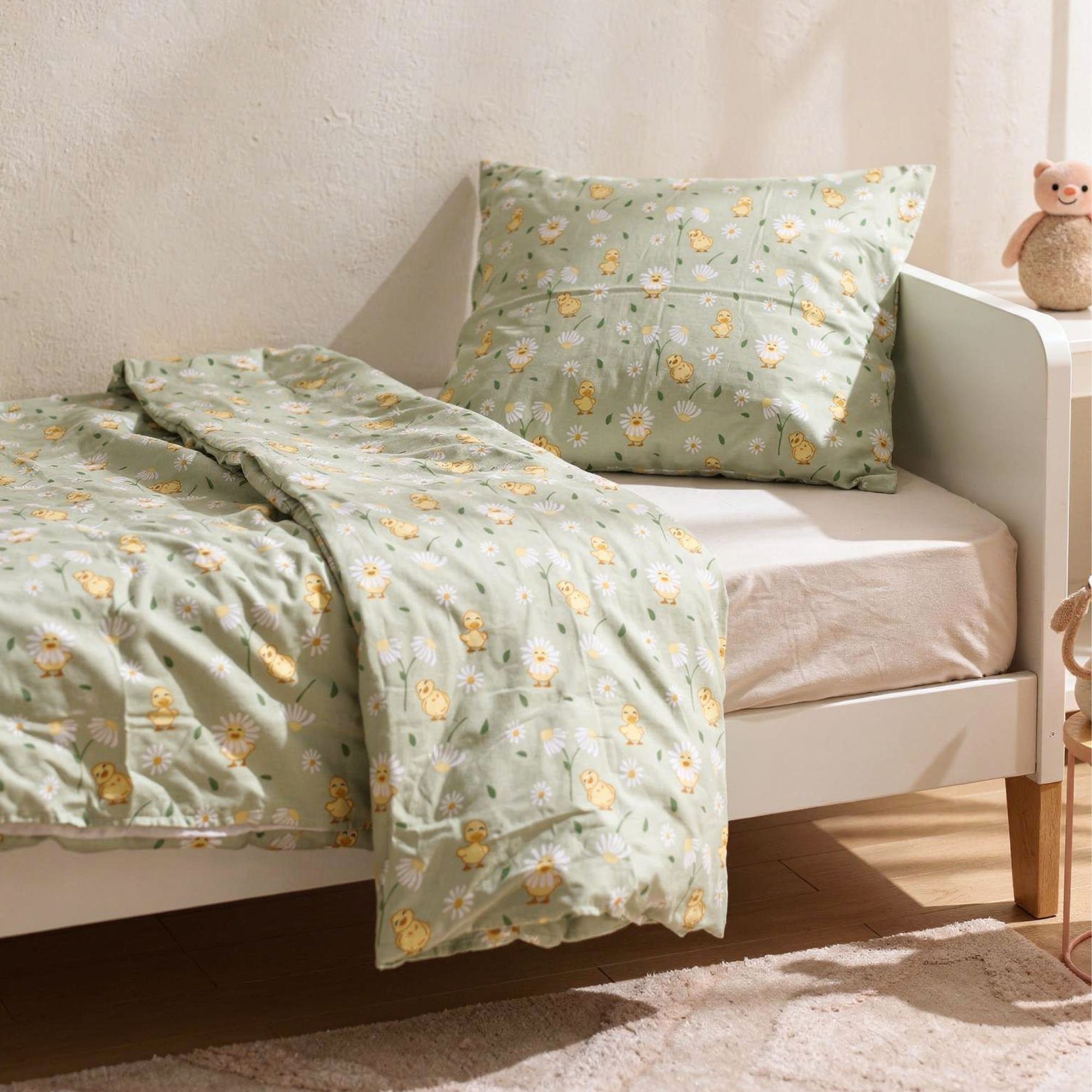 By Mats junior sengetøj 100x140 cm - grønt med ællinger og blomster