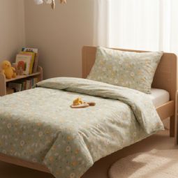 Sengesættet er fremstillet i 100% blød bomuld, som er åndbart og behageligt mod barnets hud. Bomuldens naturlige egenskaber hjælper med at regulere temperaturen i løbet af natten, så dit barn får en komfortabel og rolig søvn - året rundt.