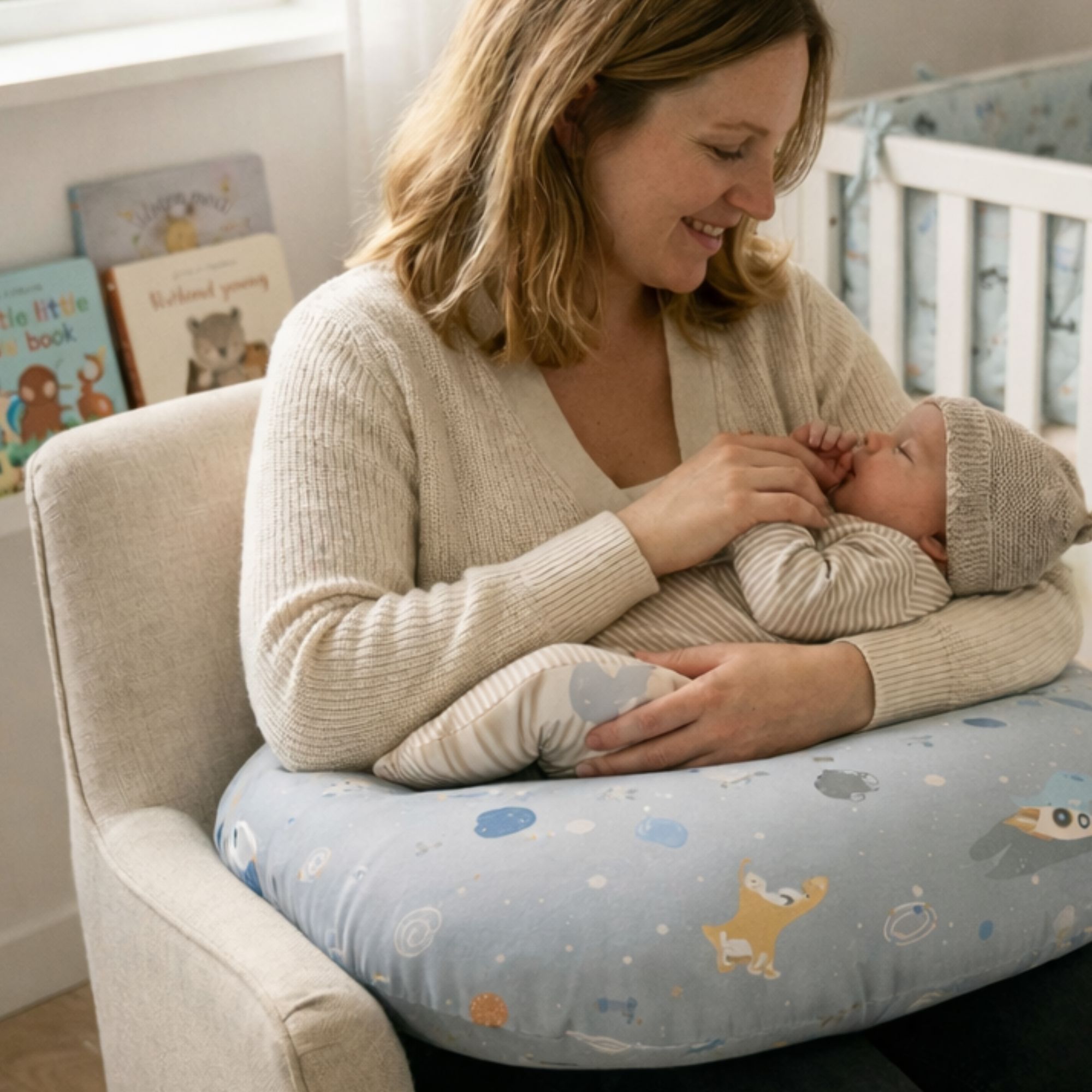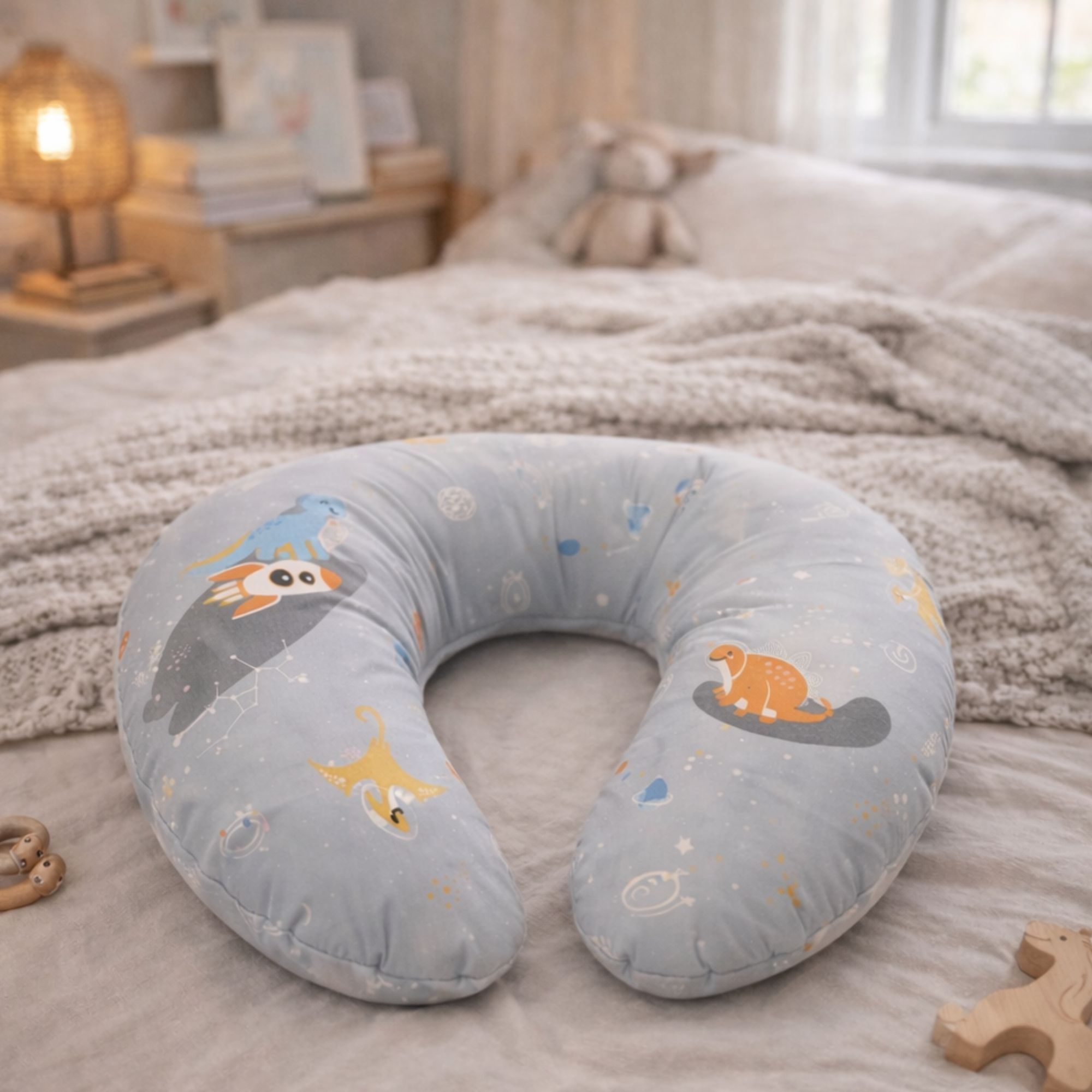 Den alsidige form gør puden til en praktisk støtte gennem flere udviklingstrin.