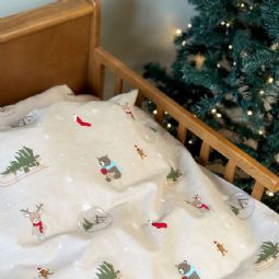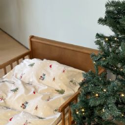 Dette charmerende julesengesæt er med et sødt design af forskellige juleikoner. Baby sengetøjet med julemotiv vil bringe massere af julestemning til børneværelset. Baby sengetøjet passer til en almindelig babydyne størrelse og kan bruges i sengen, i babynesten, i barnevognen eller hvor end dynen medtages. Babydynen er ofte fast omkring barnet i mange af døgnets timer, da den skaber stor ro, genkendelighed, tryghed og varme for babyen - ikke kun den første tid, men ofte op til 2-3 års alderen. Det bruges derfor rigtig meget og bliver vasket ofte, og derfor ønsker de fleste også blødt sengetøj i bomuld af høj kvalitet.