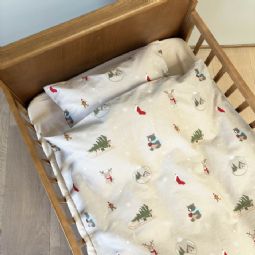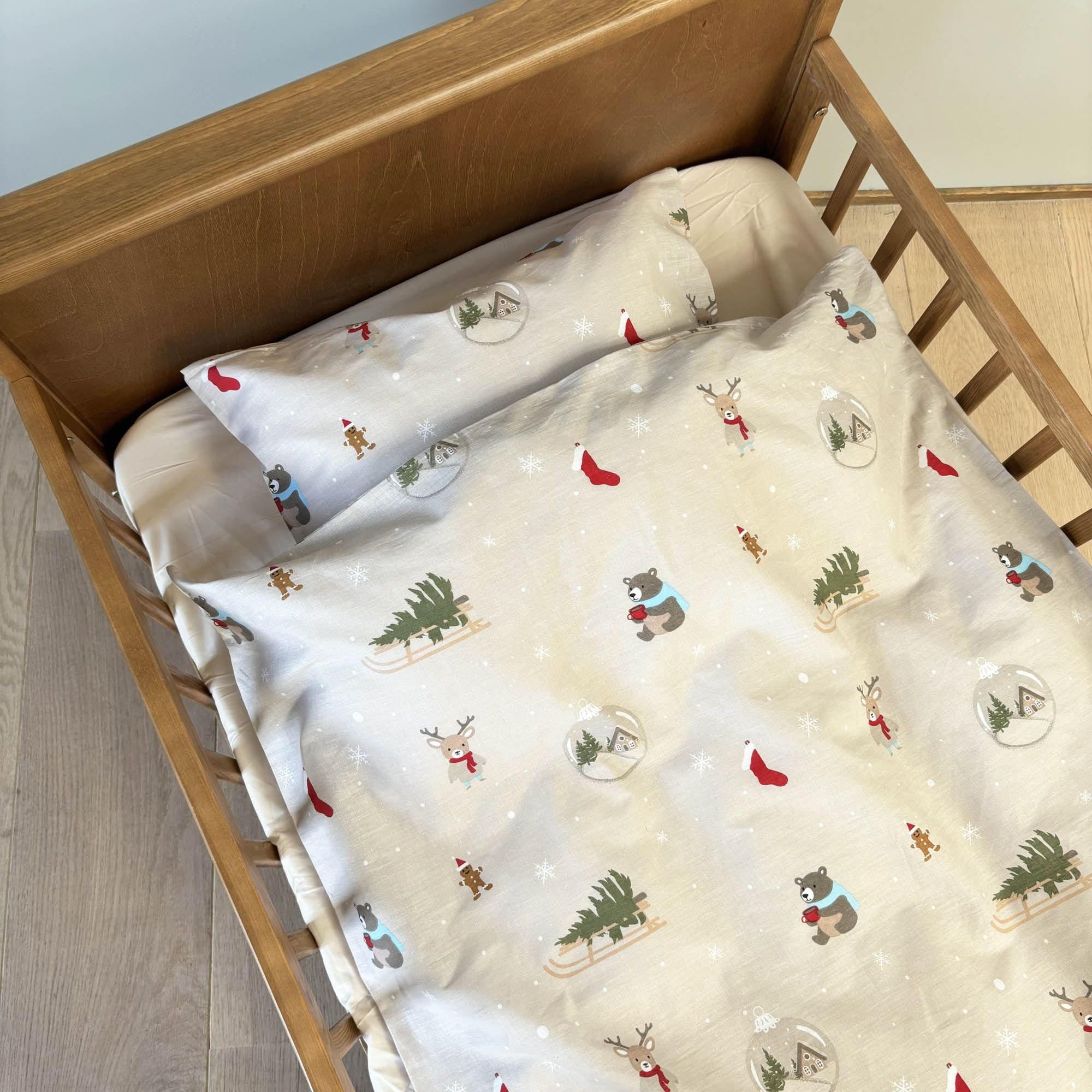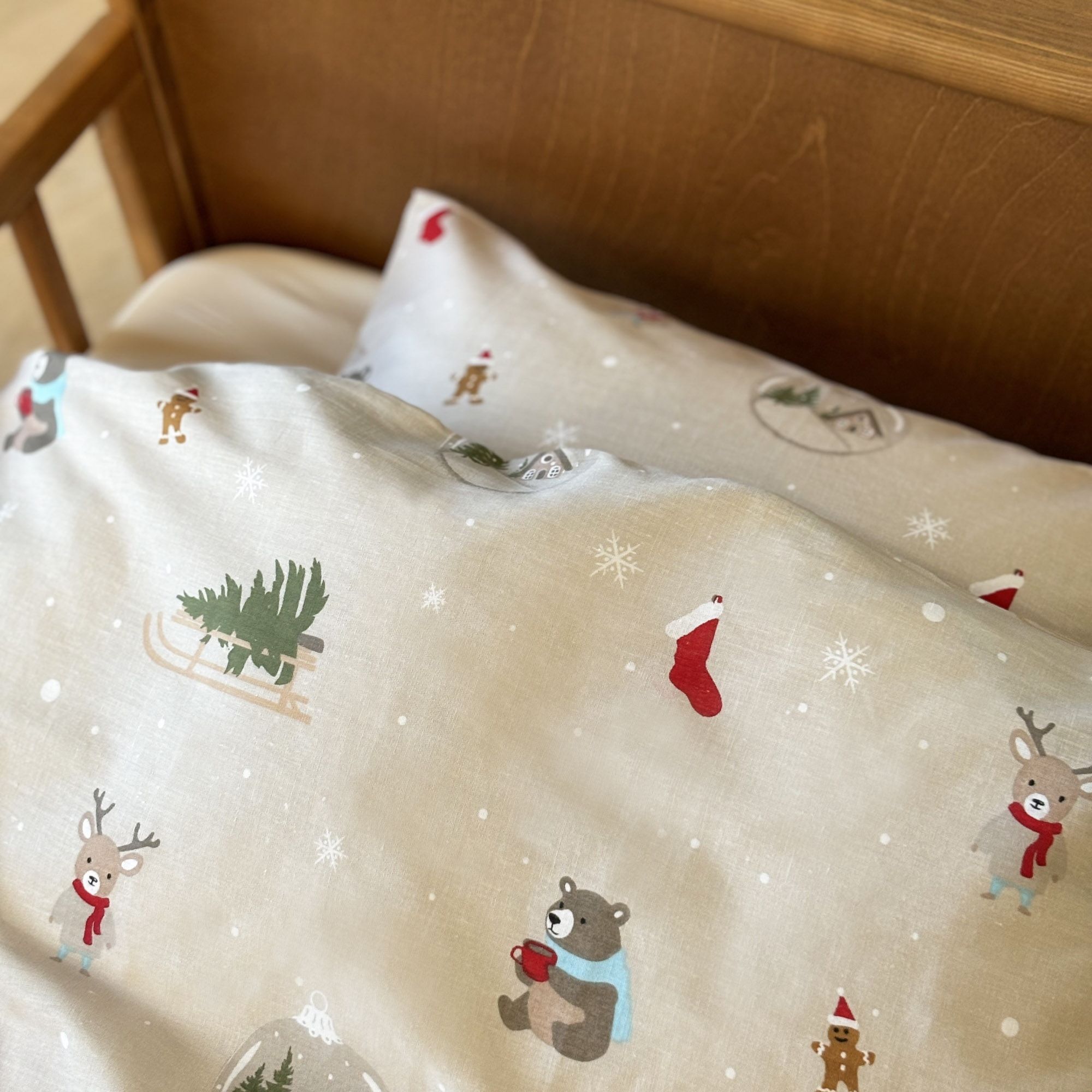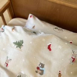 Blødt julesengetøj i 100% bomuld, med juleikoner. Produceret med lette og åndbare bomuldsfibre giver det sengesættet en følelse af blødhed, der gør at dynen vil falde natuligt rundt om dit barn. Balancen i naturlig komfort fra det bløde materiale og juledesignet, gør dette sæt til en sikker julefavorit hos dit barn.
