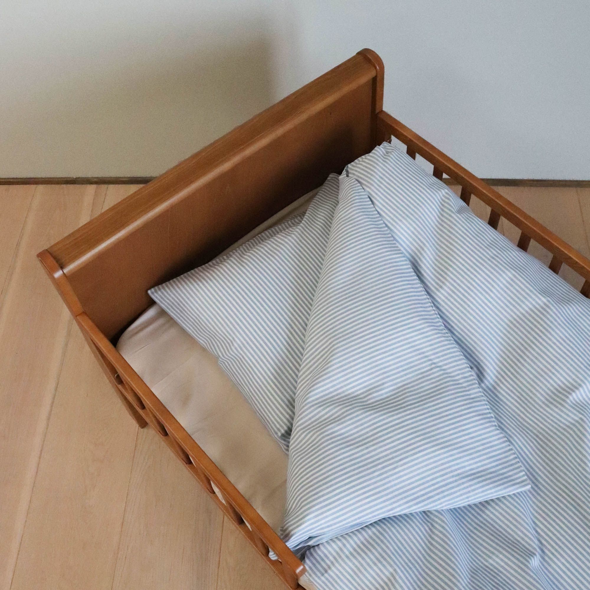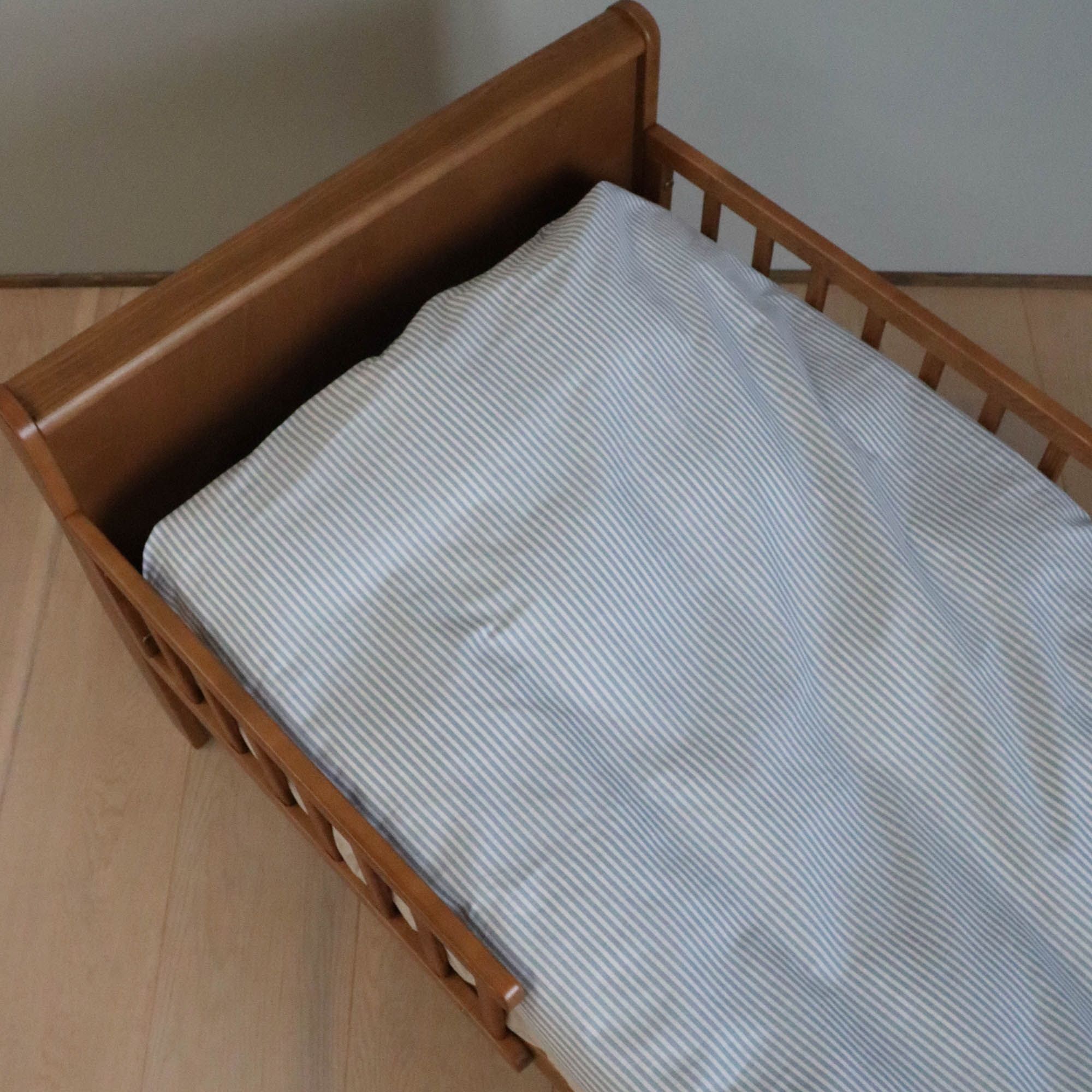 Blødt baby sengetøj i 100% bomuld, med striber. Produceret med lette og åndbare bomuldsfibre giver det sengesættet en følelse af blødhed, der gør at dynen vil falde natuligt rundt om dit barn. Balancen i naturlig komfort fra det bløde materiale og det hyggelige design, gør dette sæt til en sikker favorit hos dit barn.