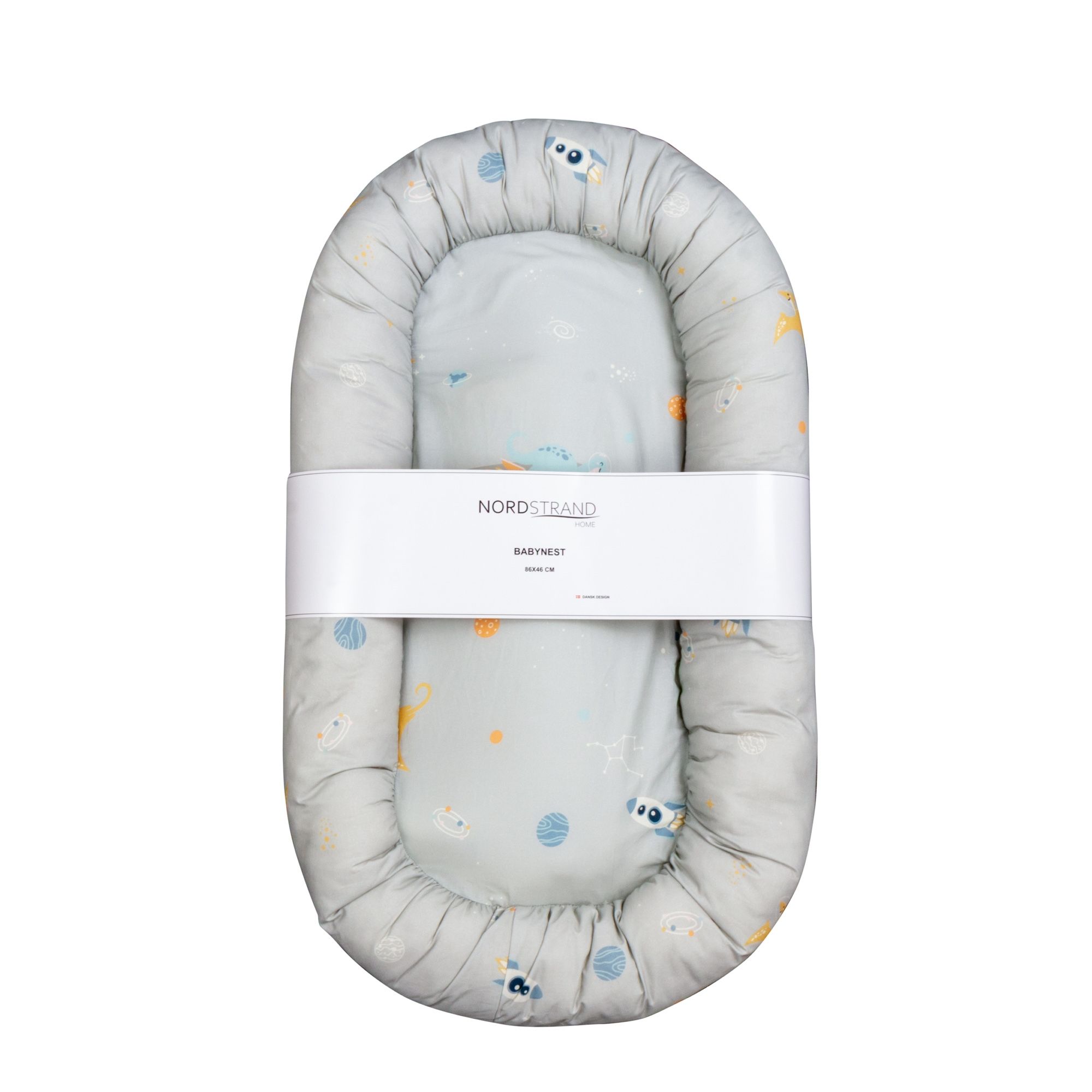 En blød baby nest i høj kvalitet og 100% bomuldsbetræk, perfekt til det lille nye familiemedlem. Brug babynesten som et trygt sted for dit barn, når din arm behøver en pause, eller under legestativet de første par uger eller måneder. Det søde design med dinosaurer i rummet findes både som sengerand, baby nest, baby sengetøj, puslepude og ammepude. Du kan derfor let skabe genkendelige, hyggelige og ikke mindst matchende omgivelser til det nye familiemedlem.
