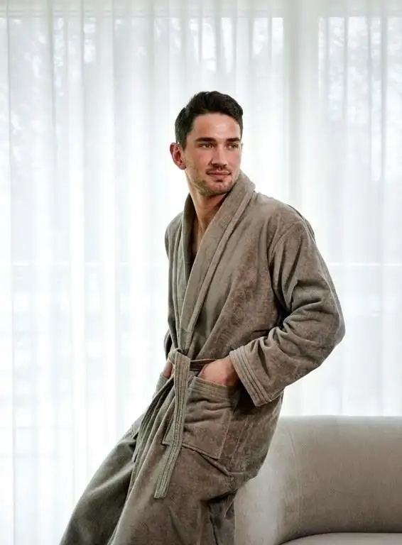 Høie Of Scandinavia bomulds morgenkåbe er et must-have hjemmetilbehør, der kombinerer stil, komfort og funktionalitet. Med sit design og beige farve er denne morgenkåbe ikke kun tiltalende for øjet, men også yderst behagelig at have på. Den har et bælte og lommer, hvilket øger funktionaliteten. Uanset om du nyder en afslappende morgenkaffe eller tager et varmt bad, er denne morgenkåbe det perfekte valg. Den er af 100% ekstra blødt bomuld, som giver en luksuriøs fornemmelse. Indersiden er i blødt bomuldsfrotté, hvilke betyder at den ikke bare blød og behagelig, den er også åndbar og højabsorberende. Bomuldsfrotté er kendt for sin evne til at tørre hurtigt, hvilket gør denne morgenkåbe ideel til brug efter badet. Dens blødhed og komfort gør den også perfekt til afslapning rundt omkring i hjemmet. Ydersiden af morgenkåben er af velour.