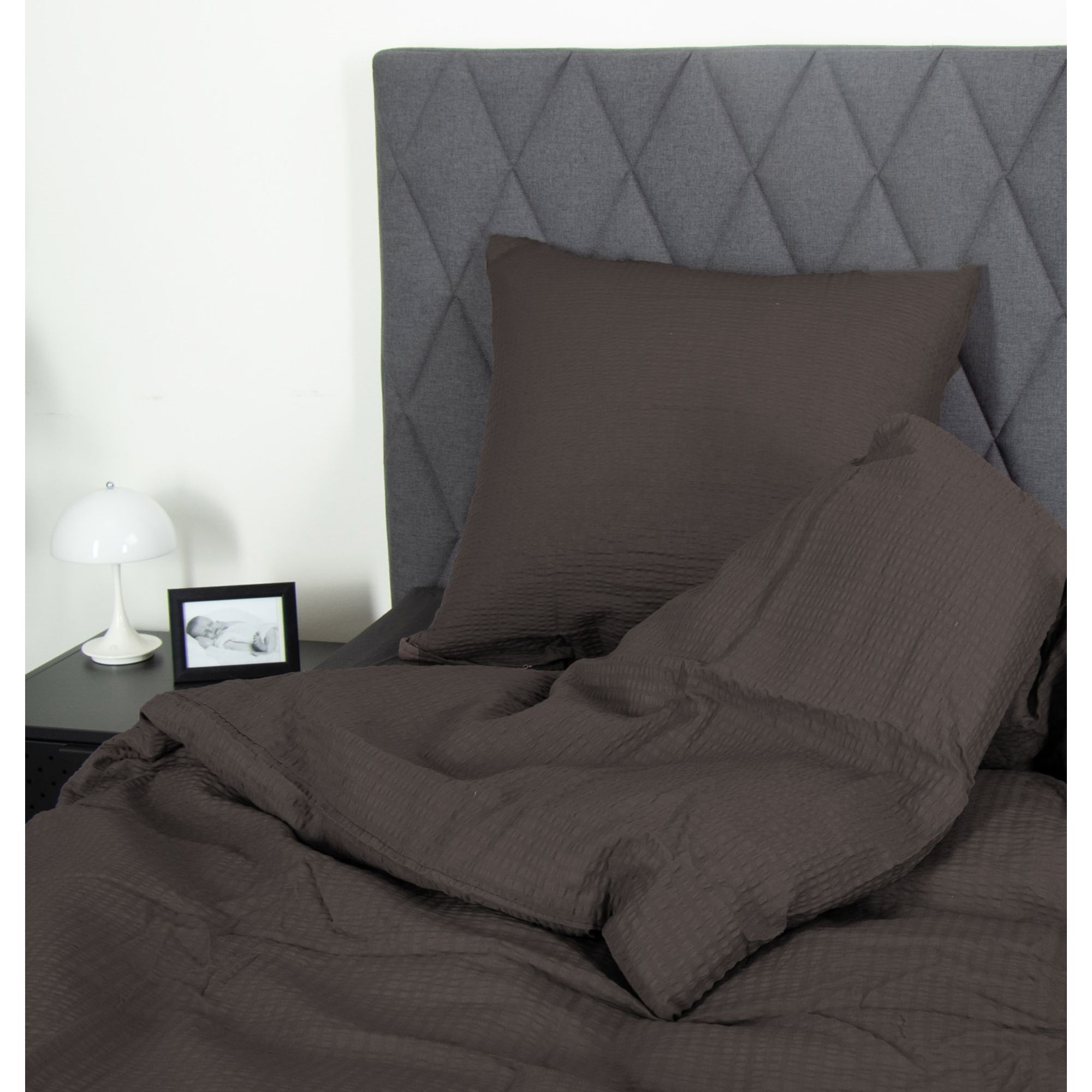 Bæk og Bølge dobbelt sengetøj 200x220 cm - Mørkegråt sengesæt - 100% bomuld - Krepp sengelinned - By Night