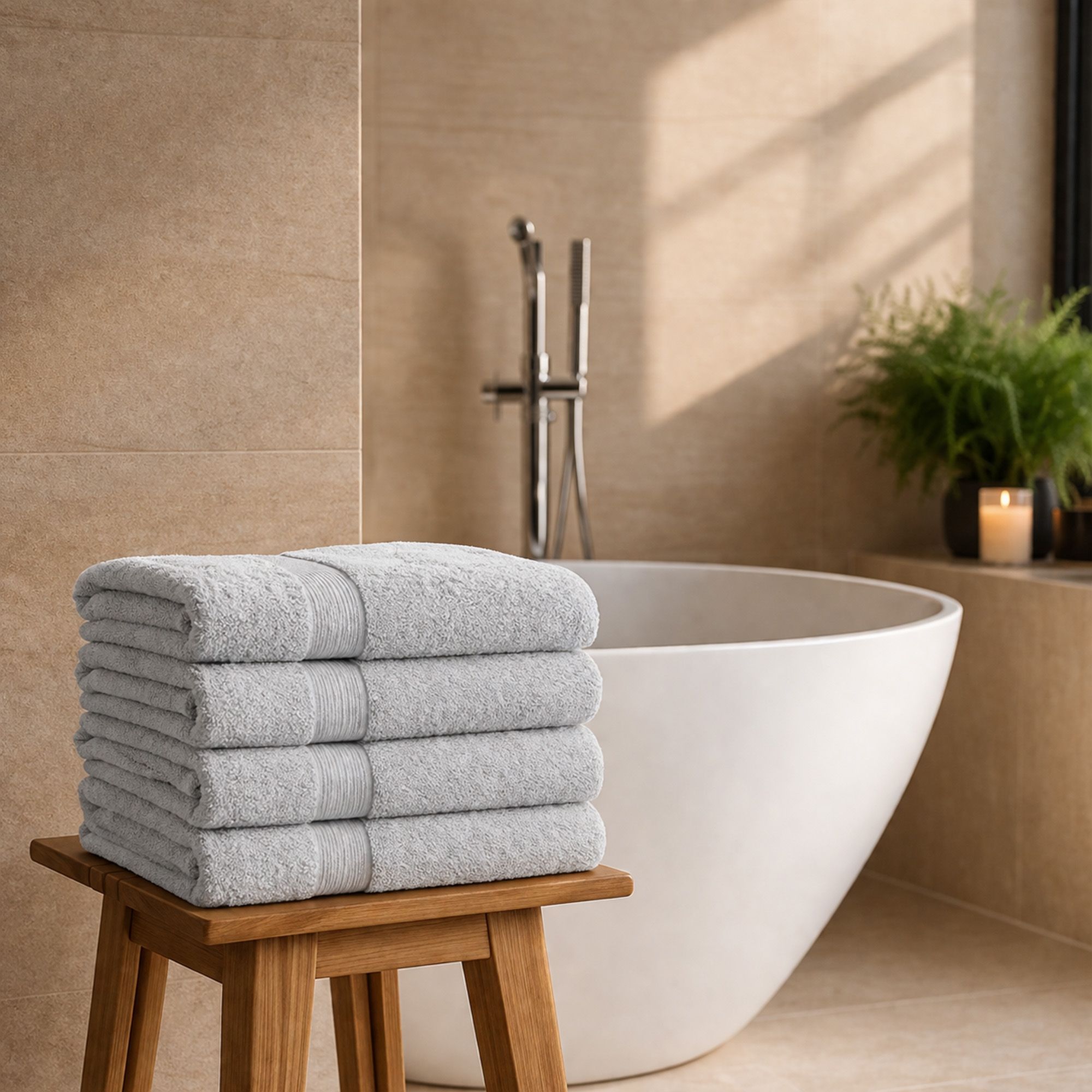 Bambusfibre er kendt for deres naturlige blødhed og høje absorberingsevne. Fibrenes hule struktur gør, at håndklædet kan optage mere vand og samtidig tørre hurtigere end traditionelle bomuldshåndklæder. Kombinationen med slidstærk bomuld giver optimal holdbarhed og gør dem derfor perfekt til daglig brug.