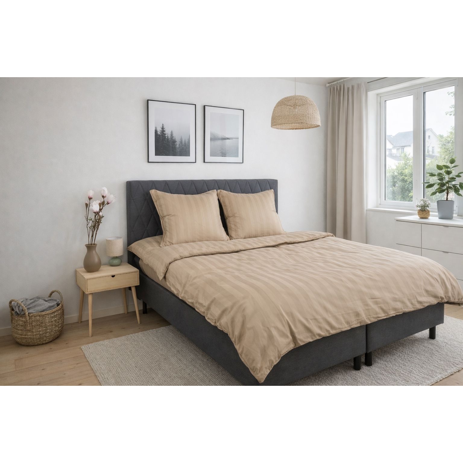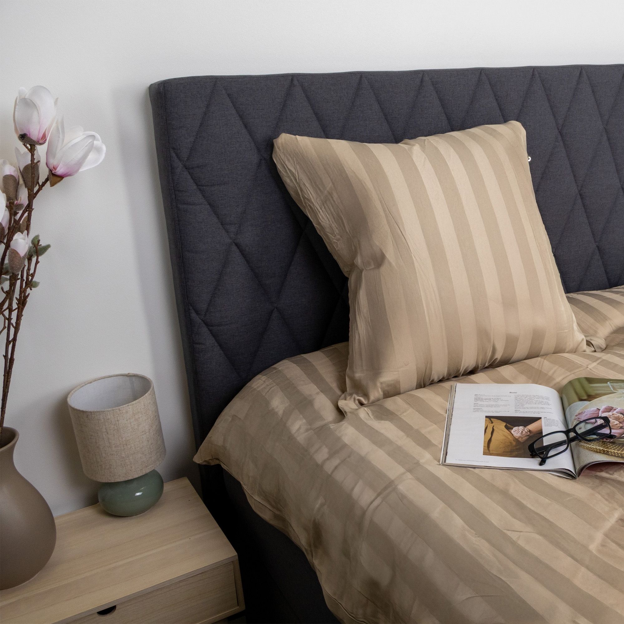 Bambus pudebetræk - 100% Naturligt bambus - 60x63 cm - Sandfarvet, jacquardvævet hovedpudebetræk med striber
