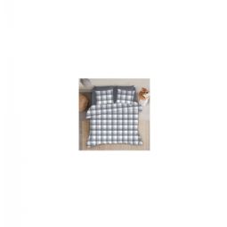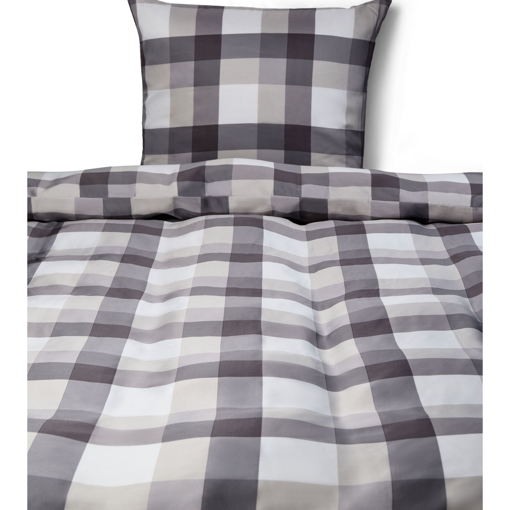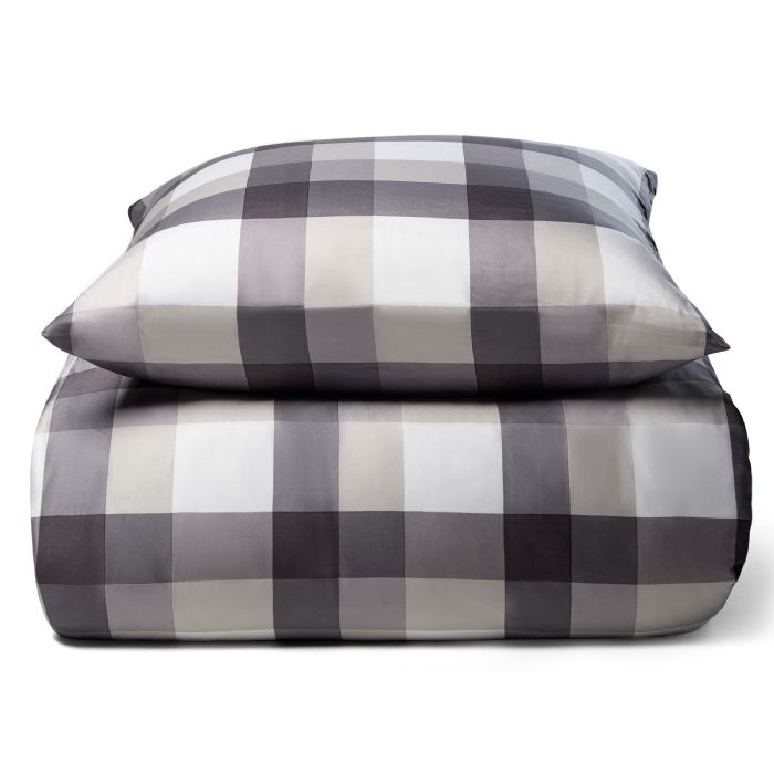 Bambus sengetøj - 100% Naturligt bambus - 140x220 cm - Store grå tern - Satinvævet sengesæt