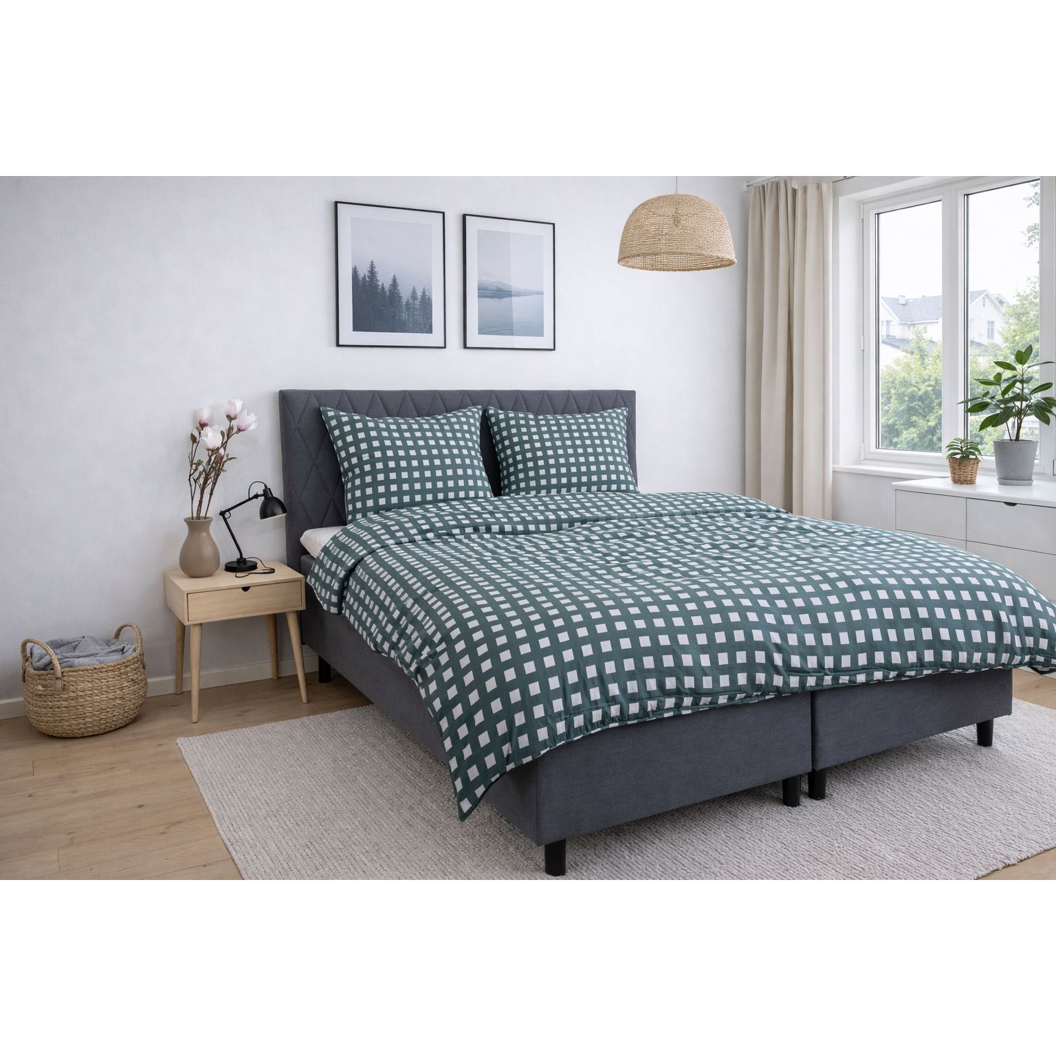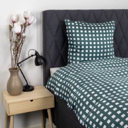 Bambus sengetøj 140x200 cm - 100% bambus - Grøn ternet