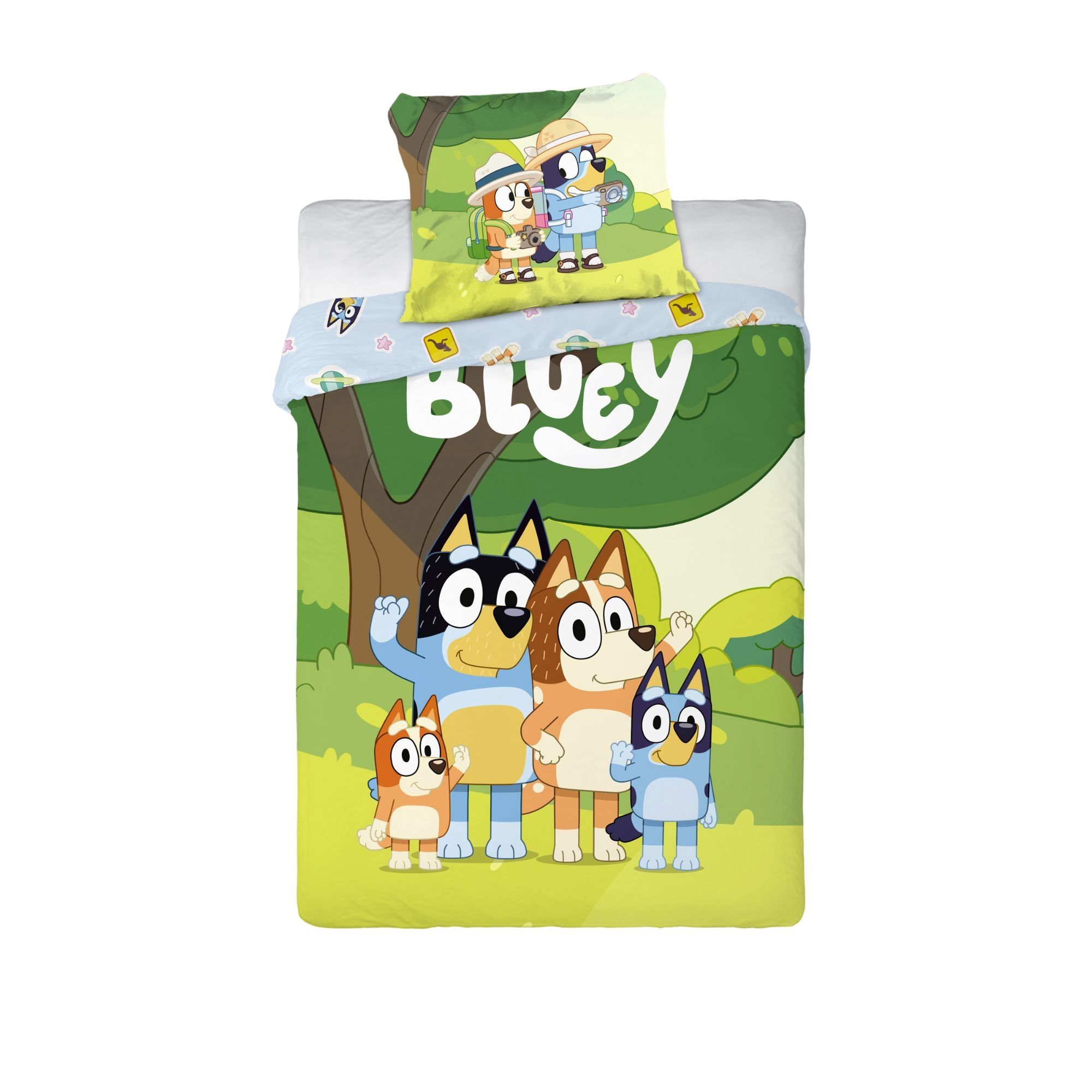 Blødt junior sengetøj i 100% bomuld, med et super fint og genkendeligt design af Bluey og hele familien foran det store træ. Produceret med lette og åndbare bomuldsfibre giver en sengesættet en følelse af blødhed, som gør at dynen vil falde natuligt rundt om dit barn. Balancen i naturlig komfort fra det bløde materiale og det hyggelige Bluey, gør dette sæt til en sikker favorit hos dit barn.