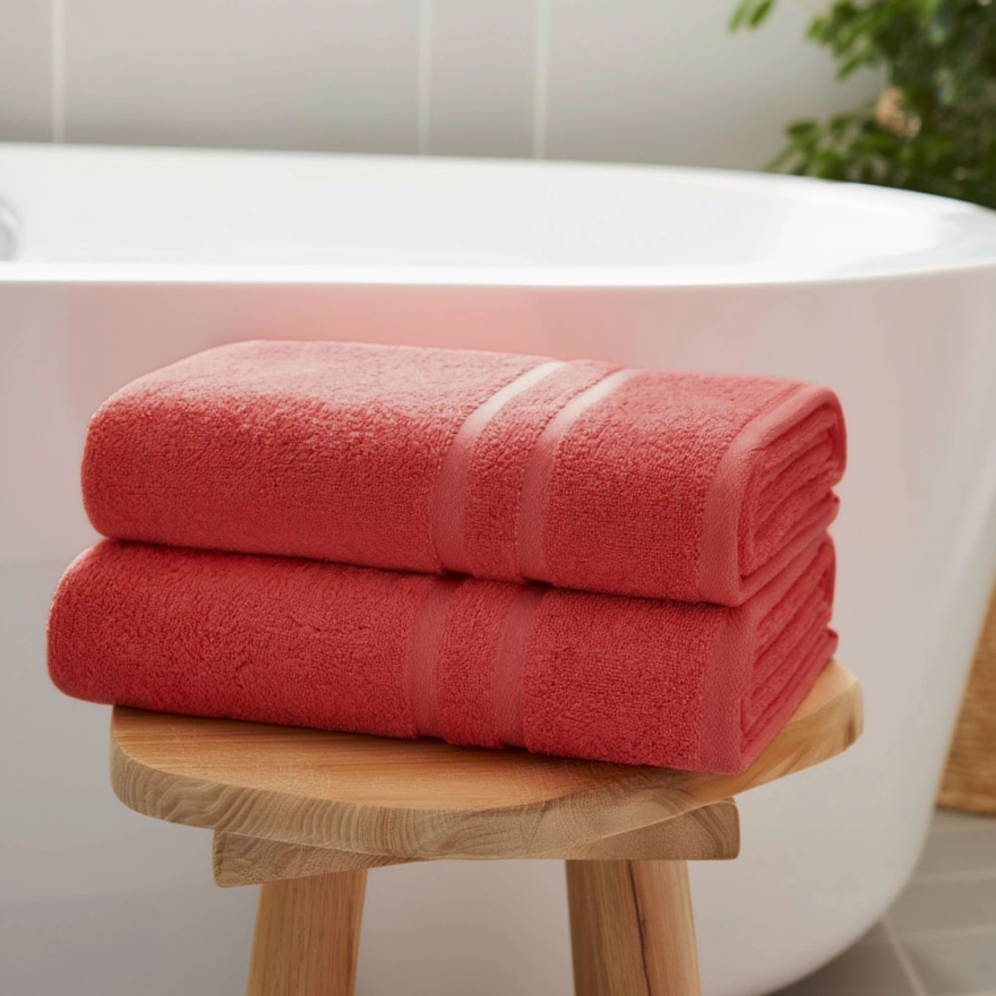 Coral farvet bomuldsbadehåndklæde - Blødt håndklæde fra IN Style