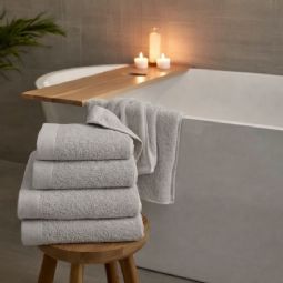 Bomuld er et naturligt materiale, der er kendt for sin blødhed, holdbarhed og gode sugeevne. Den tætte kvalitet på 500 g/m² giver håndklædet en luksuriøs følelse og sikrer samtidig god slidstyrke, så håndklædet kan bruges igen og igen i hverdagen.