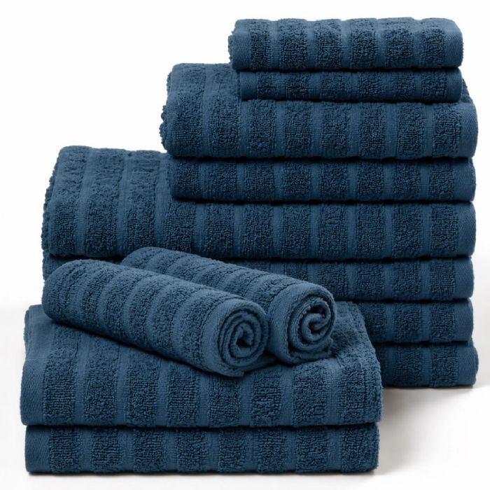 Skab et gennemført og stilrent badeværelse med dette komplette håndklædesæt med 12 stk. Her får du en praktisk og elegant løsning, hvor alle størrelser er samlet i én pakke. Det klassiske og enkelte design giver et tidløst udtryk, som passer perfekt ind i både moderne og traditionelle hjem. Badehåndklæderne er fremstillet i 100% kæmmet bomuld, hvor de finere og længere fibre giver en ekstra blød og glat overflade. Resultatet er en behagelig kvalitet, der føles skånsom mod huden og samtidig sikrer en effektiv absorbering i hverdagen.
