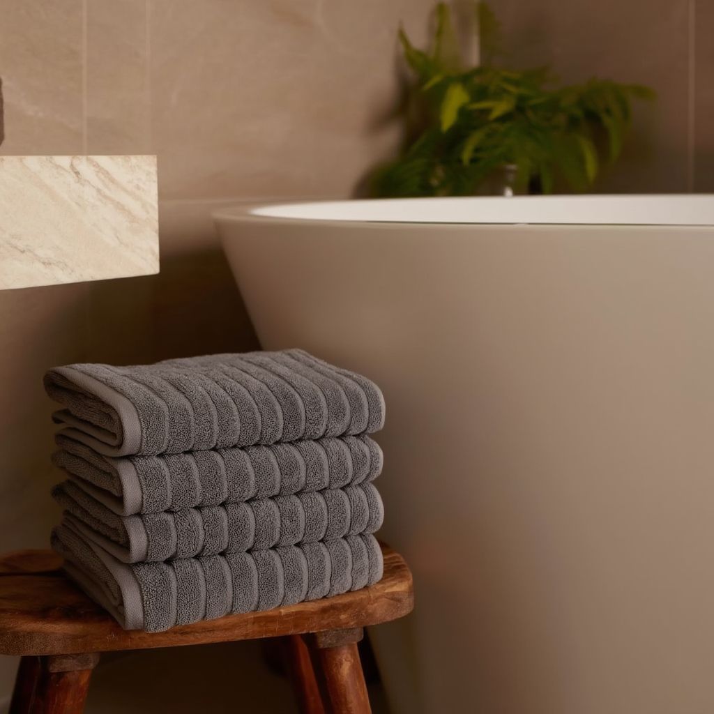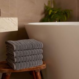 Opgrader dit badeværelse med disse stilfulde håndklæder i en mørkegrå nuance, der tilfører ro og elegance til indretningen. Det klassiske og enkelte design giver et tidløst udtryk, som passer perfekt ind i både moderne og traditionelle hjem. Håndklæderne er fremstillet i 100% kæmmet bomuld, hvor de finere og længere fibre giver en ekstra blød og glat overflade. Resultatet er en behagelig kvalitet, der føles skånsom mod huden og samtidig sikrer en effektiv absorbering i hverdagen.