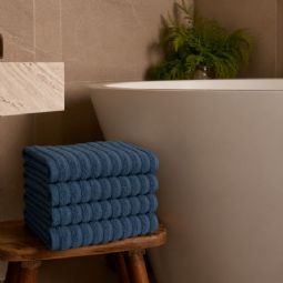 Opgrader dit badeværelse med disse stilfulde badehåndklæder i en blå nuance, der tilfører ro og elegance til indretningen. Det klassiske og enkelte design giver et tidløst udtryk, som passer perfekt ind i både moderne og traditionelle hjem. Badehåndklæderne er fremstillet i 100% kæmmet bomuld, hvor de finere og længere fibre giver en ekstra blød og glat overflade. Resultatet er en behagelig kvalitet, der føles skånsom mod huden og samtidig sikrer en effektiv absorbering i hverdagen.
