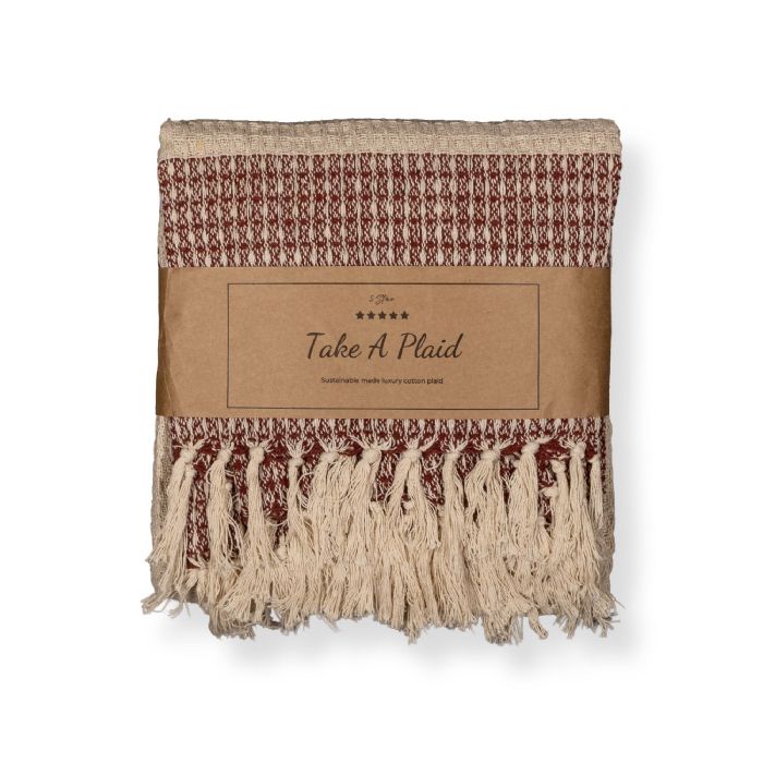 Skab en hyggelig og stilfuld stemning i dit hjem med denne smukke bomulds plaid fra Take a plaid. Plaiden er fremstillet i 100% recycled bomuld, hvilket gør den både blød, komfortabel og til et mere bæredygtigt valg.