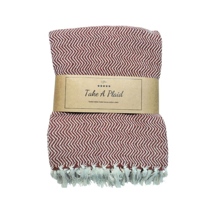 Skab en hyggelig og stilfuld stemning i dit hjem med denne smukke bomulds plaid fra Take a plaid. Plaiden er fremstillet i 100% recycled bomuld, hvilket gør den både blød, komfortabel og til et mere bæredygtigt valg.