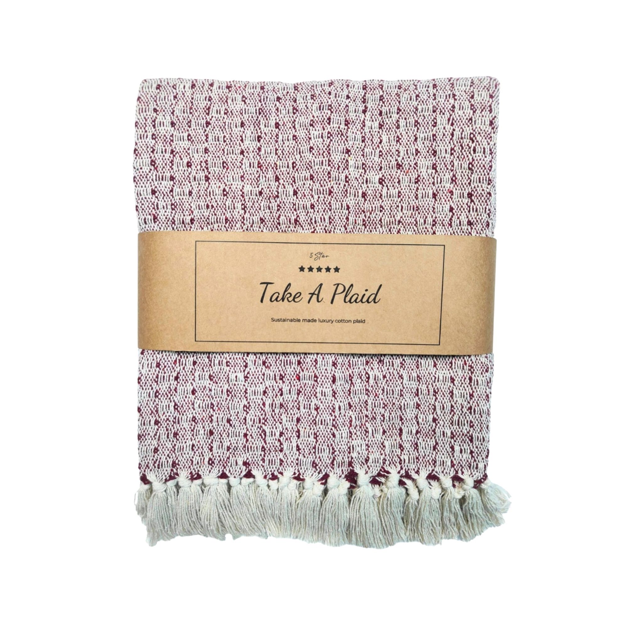 Skab en hyggelig og stilfuld stemning i dit hjem med denne smukke bomulds plaid fra Take a plaid. Plaiden er fremstillet i 100% recycled bomuld, hvilket gør den både blød, komfortabel og til et mere bæredygtigt valg.