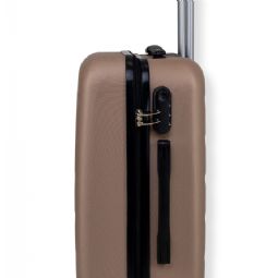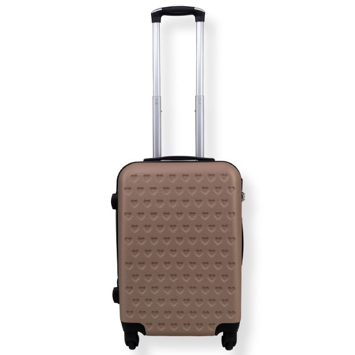 Denne brune kabinekuffert med hjerter er den perfekte rejsemakker til både korte og længere ture. Rejs nemt og sikkert med en kabinekuffert fremstillet i slidstærkt ABS plast. Materialet giver en stærk og holdbar overflade, som er modstandsdygtig overfor de hårde slag og pres, der kan opstå på f.eks. et bagagebånd. Det slidstærke materiale beskytter altså dine ejendele på hele rejsen - samtidig er kufferten let og nem at håndtere.