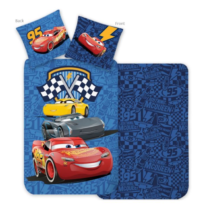 Cars sengetøj med vendbart design, forskellige motiver på forsiden og bagsiden. På den ene side af sengetøjet, er der motiv af Lynet McQueen, Cruz Ramirez & Jackson Storm. På den anden side er der all-over tekst. Sengesættet er produceret i 100% blød bomuld som gør sættet slidestærkt og med høj åndbarhed. Den rene bomuldskvalitet giver et lækkert og blødt sengesæt, der er med til at fremme en sovekomfort for barnet. Bomuldssengetøj kan vaskes ved 60° i vaskemaskinen, som er også et med til at holde et et højt hygiejne niveau. Sengetøjet er yderligere fremstillet med OEKO-TEX certificeret, hvilke er din garanti for at sættet er fri for skadelig kemi.
