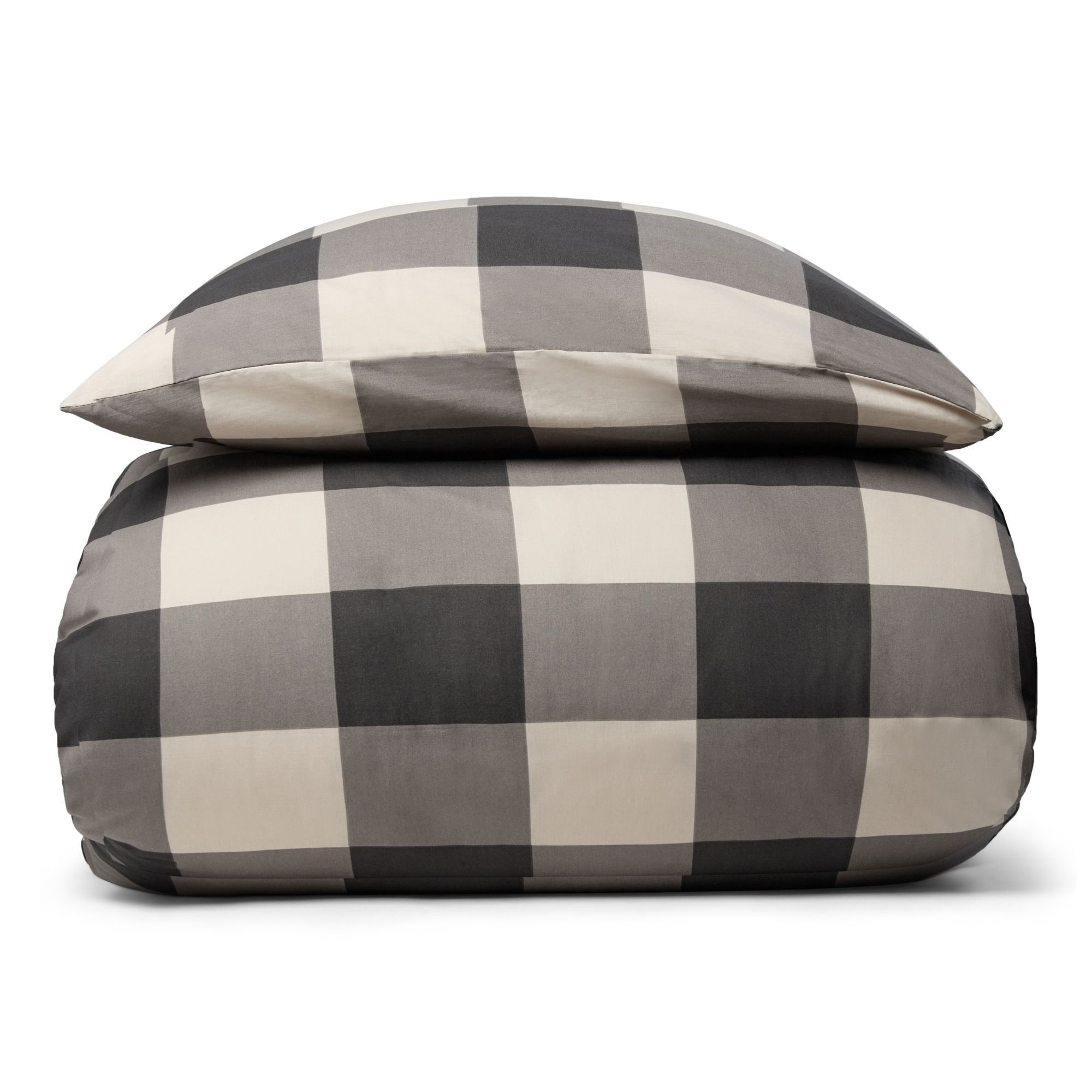 Dobbelt sengetøj 100% bomuld - 200x220 cm - Gråt ternet sengesæt - Nordstrand Home - Dynebetræk i 100% bomuld