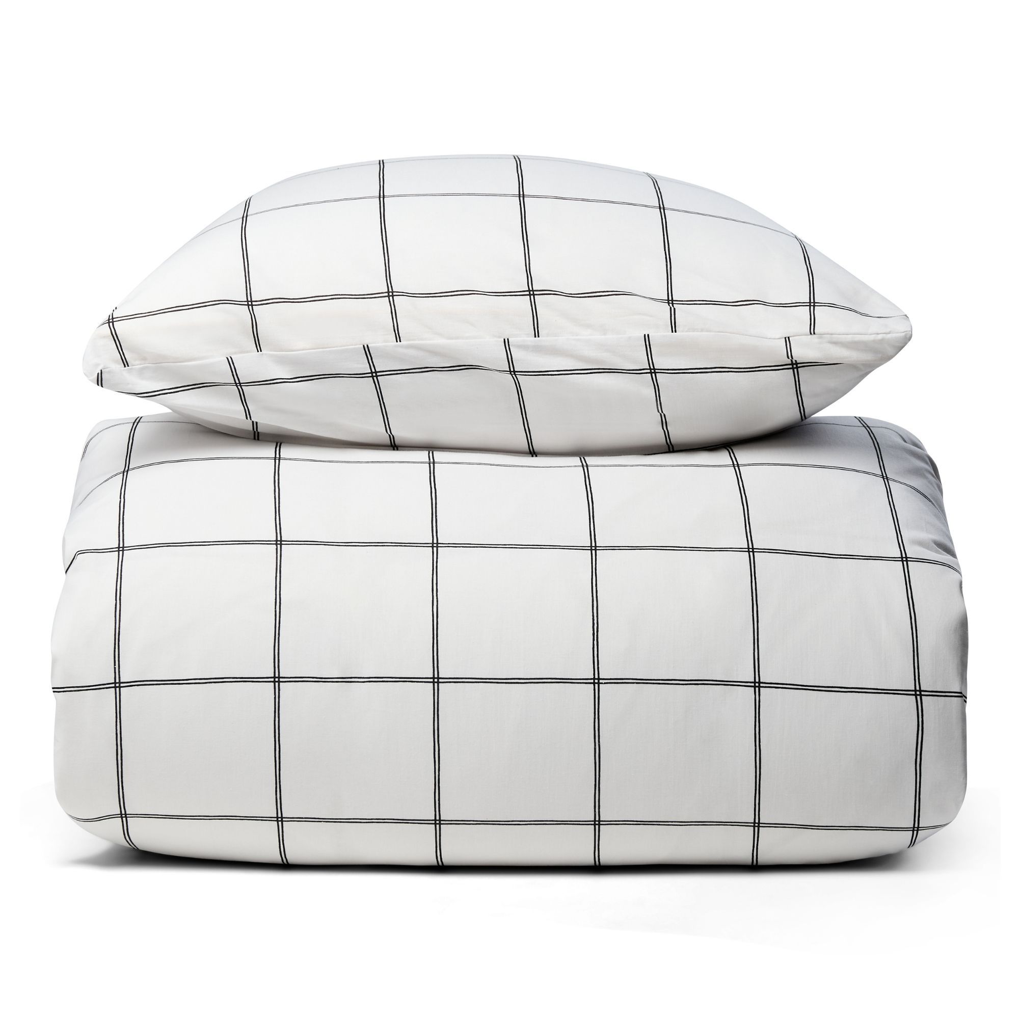 Dobbelt sengetøj 100% bomuld - 200x220 cm - Hvidt sengesæt med sorte tern - Nordstrand Home - Dynebetræk i 100% bomuld