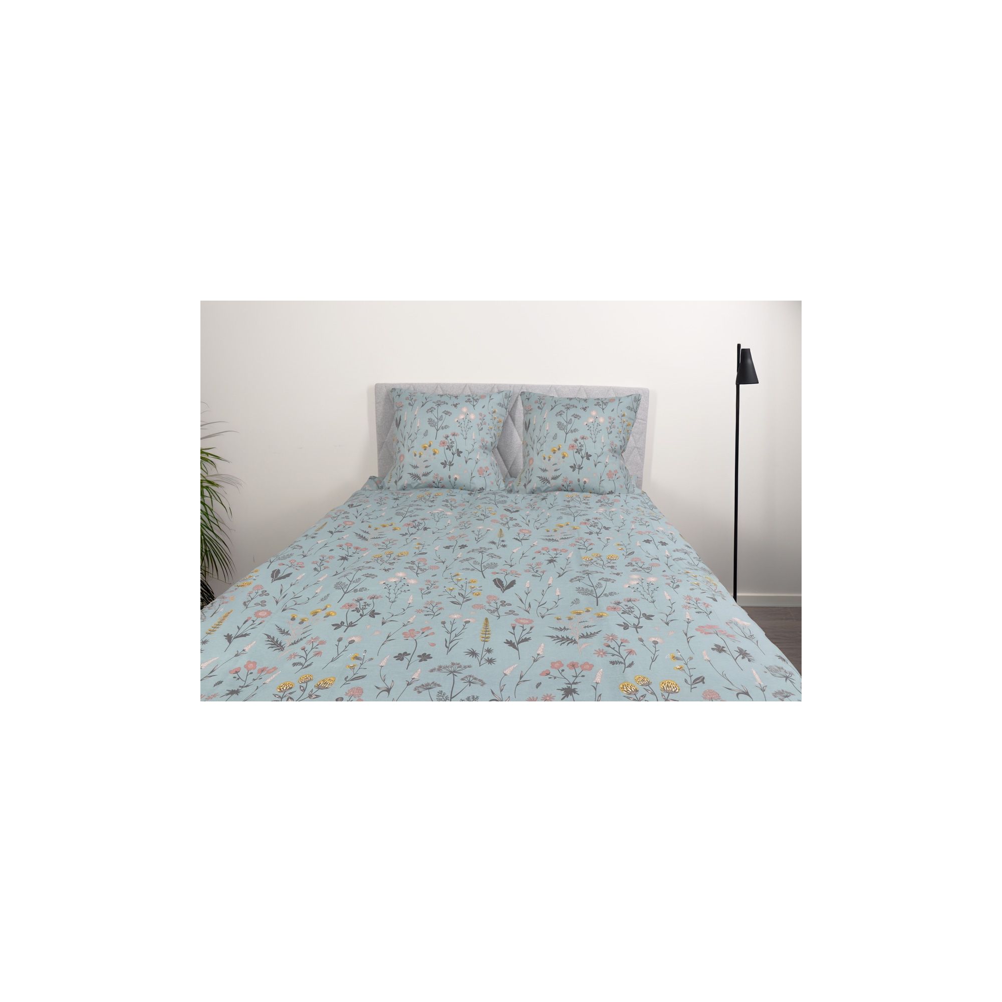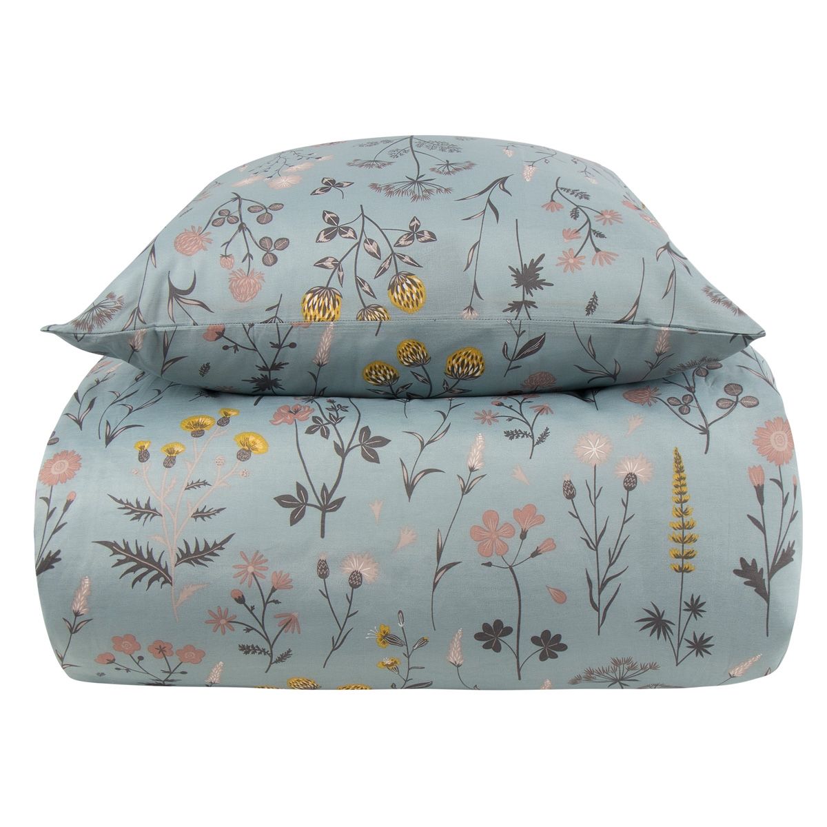 Dobbelt sengetøj 200x220 cm - Blåt blomstret sengesæt - Borg Living dobbelt dynebetræk i polycotton