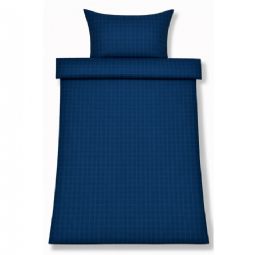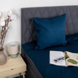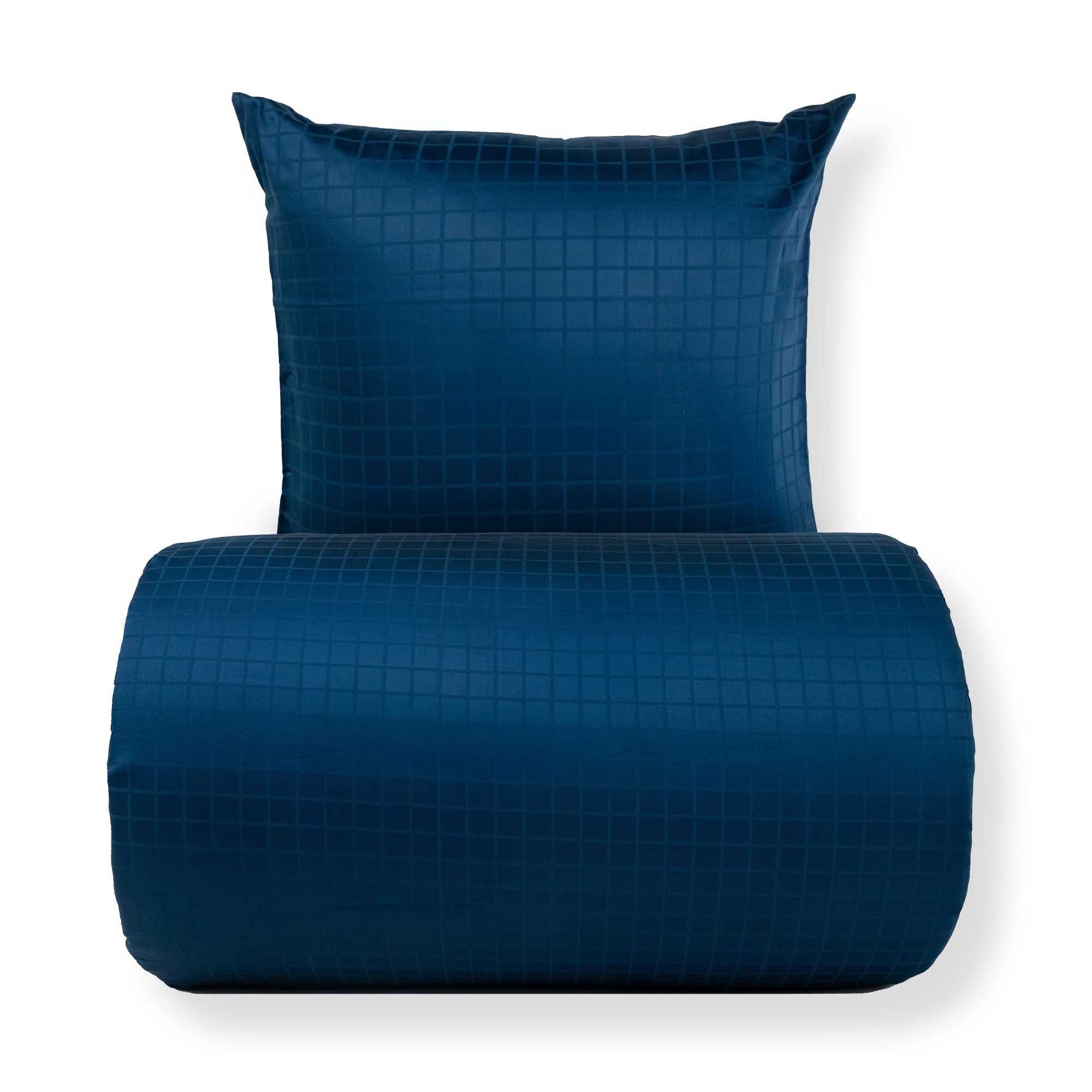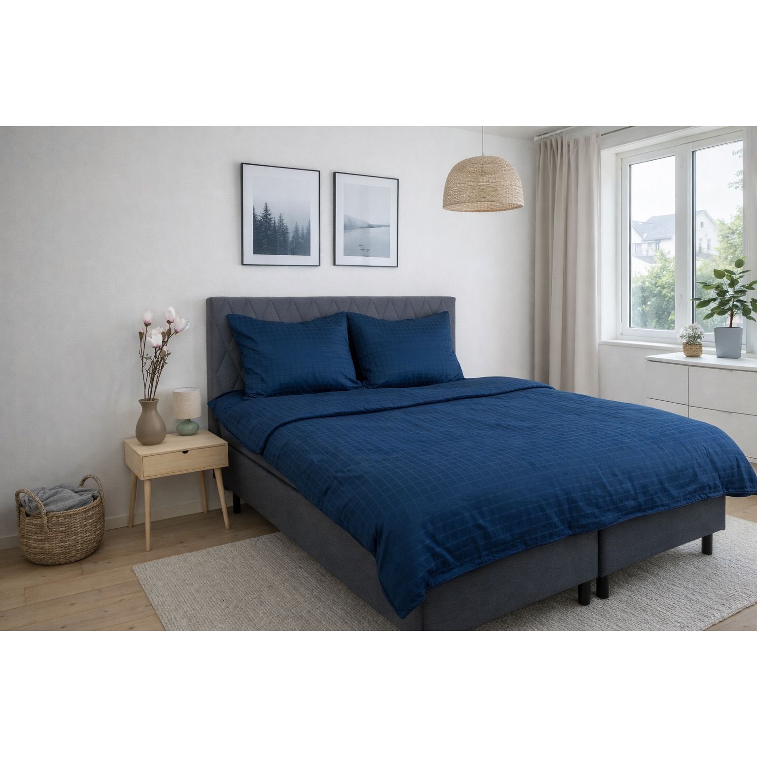 Det jacquardvævede ternede mønster er vævet direkte ind i stoffet og skaber struktur og dybde uden brug af print. Denne vævemetode sikrer, at mønsteret bevarer sit udtryk vask efter vask og giver sengetøjet et eksklusivt og gennemført look. Den blå farve understøtter det rolige design og passer let ind i både moderne og klassiske soveværelser.