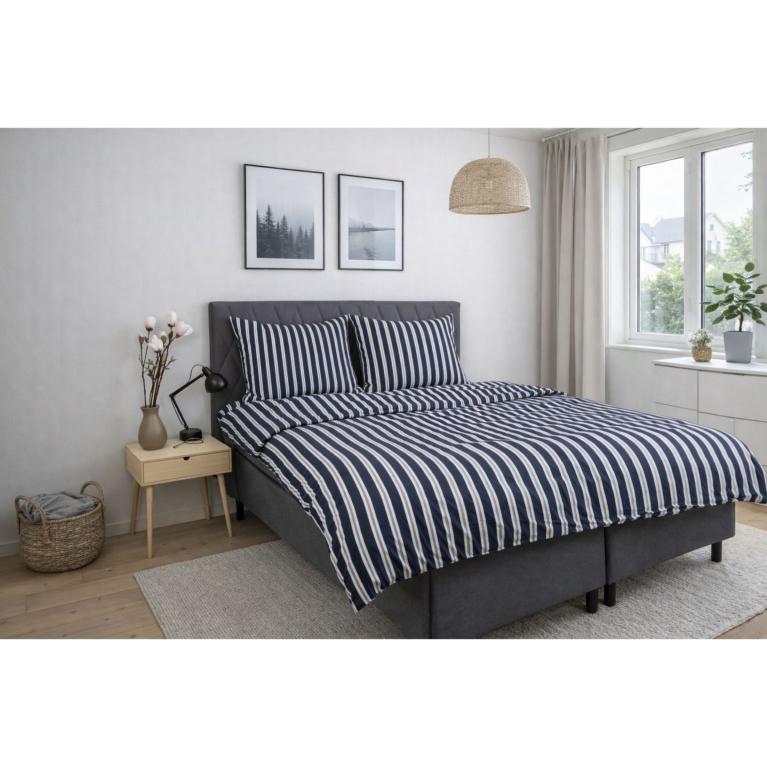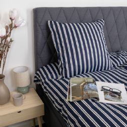 Dobbelt sengetøj 240x220 cm - Bomuldssatin - Blåt stribet print