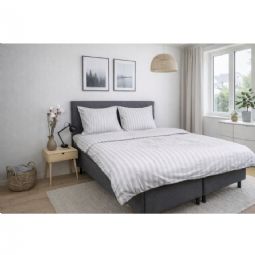 Dobbelt sengetøj 240x220 cm - Bomuldssatin - Gråt stribet print