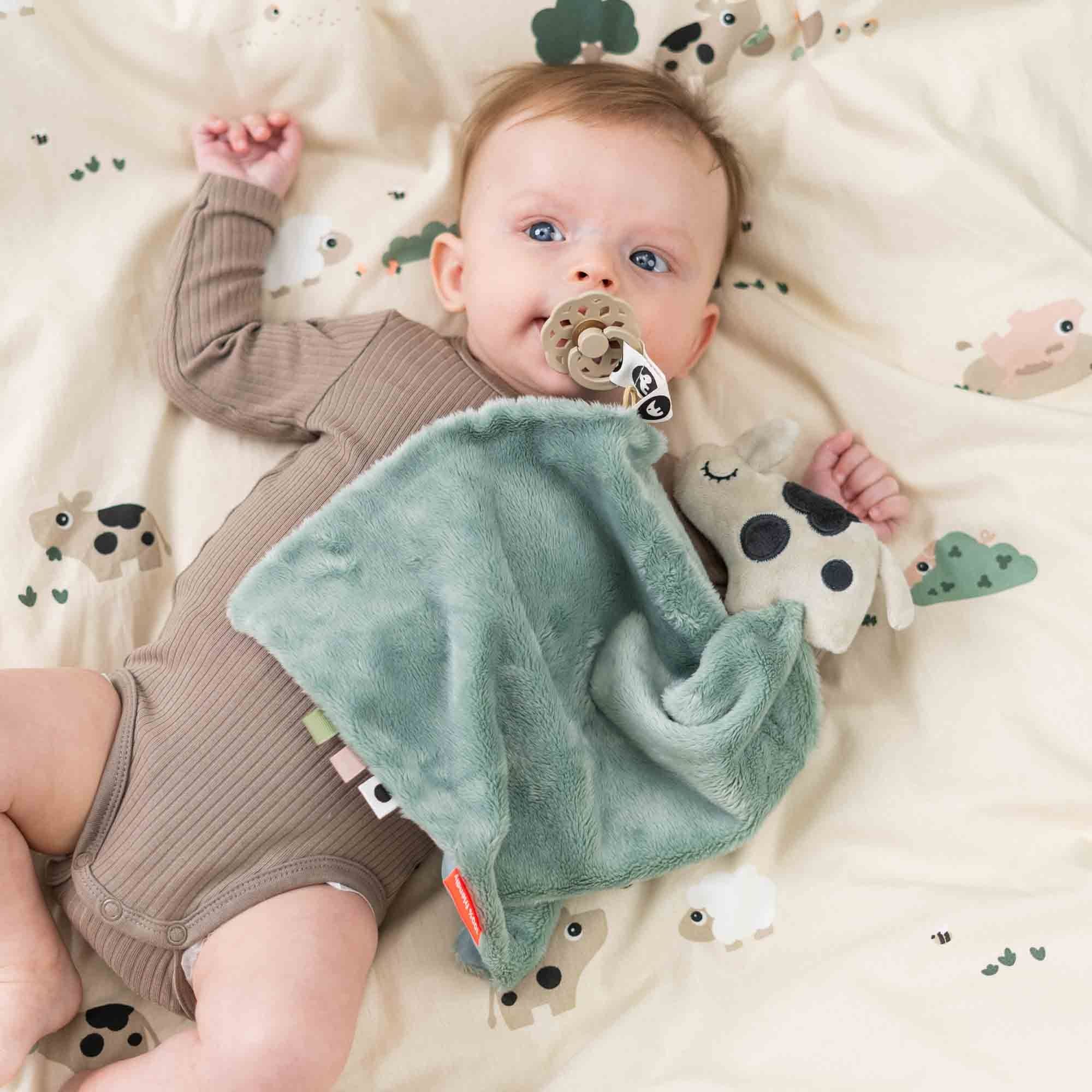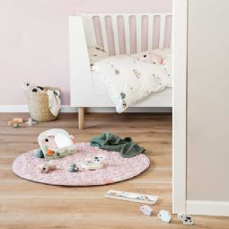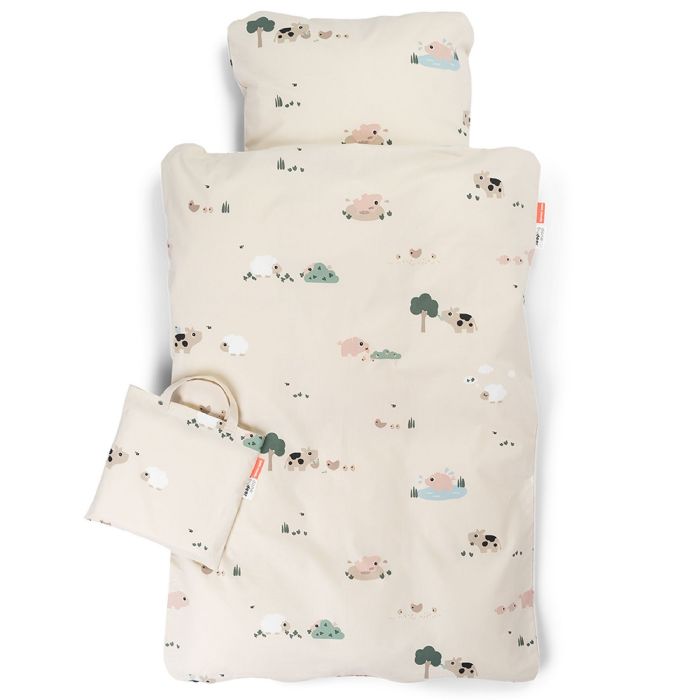 Det fine design i sandfarve med de søde bondegårdsdyr - Dotti, Pigee og Sheepy, skaber en rolig og hyggelig atmosfære i babyens omgivelser. De søde motiver giver et trygt og kærligt udtryk, som gør puttetid endnu mere hyggelig.