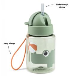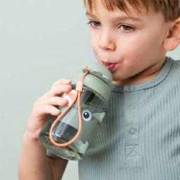Flasken er designet i en gennemsigtig grøn farve med et sødt motiv - et design, der gør det sjovere for børn at huske at drikke vand i løbet af dagen. Med sin kompakte størrelse og lette vægt er drikkedunken nem at have med i tasken. Den er fremstillet i holdbare og fødevaregodkendte materialer og tåler opvaskemaskine, hvilket gør den ideel til en travl hverdag.