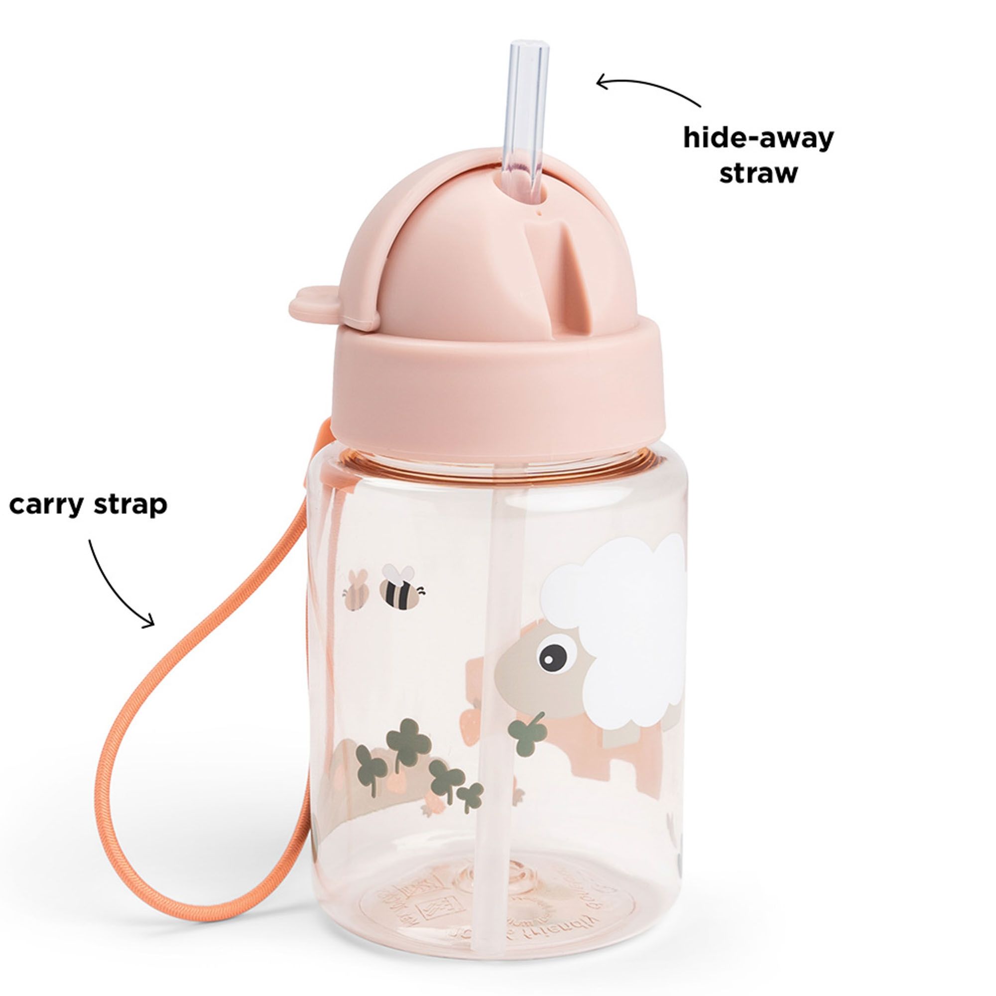Gør det nemt og sjovt for dit barn at få væske i løbet af dagen med denne smarte drikkedunk fra Done by Deer i det fine Sheepy og Pigee Tiny Farm design. Drikkeflasken rummer 280 ml og er perfekt til både børnehave, skole og udendørs eventyr.