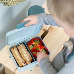 Den fine blå farve med det søde motiv skaber et legende og trygt udtryk, som gør måltidet endnu hyggeligere. Samtidig er madkassen fremstillet i fødevaregodkendt materiale og tåler både opvaskemaskine og mikroovn, hvilket gør den perfekt til en travl hverdag.