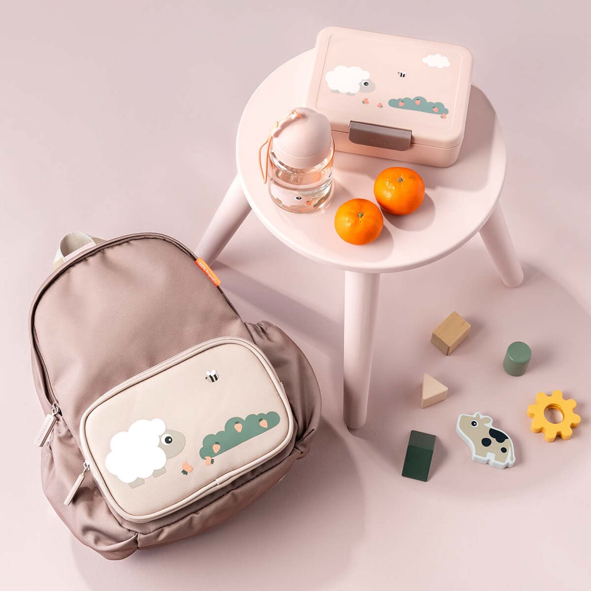 Den fine pudderfarve med det søde motiv skaber et legende og trygt udtryk, som gør måltidet endnu hyggeligere. Samtidig er madkassen fremstillet i fødevaregodkendt materiale og tåler både opvaskemaskine og mikroovn, hvilket gør den perfekt til en travl hverdag.