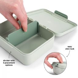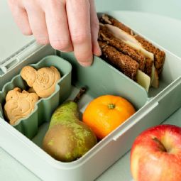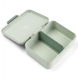 Indvendigt er madkassen udstyret med en praktisk, aftagelig skillevæg med flere placeringsmuligheder. Det gør det nemt at opdele mad og snacks, så sandwich, frugt og grøntsager kan holdes adskilt - præcis som dit barn ønsker det.