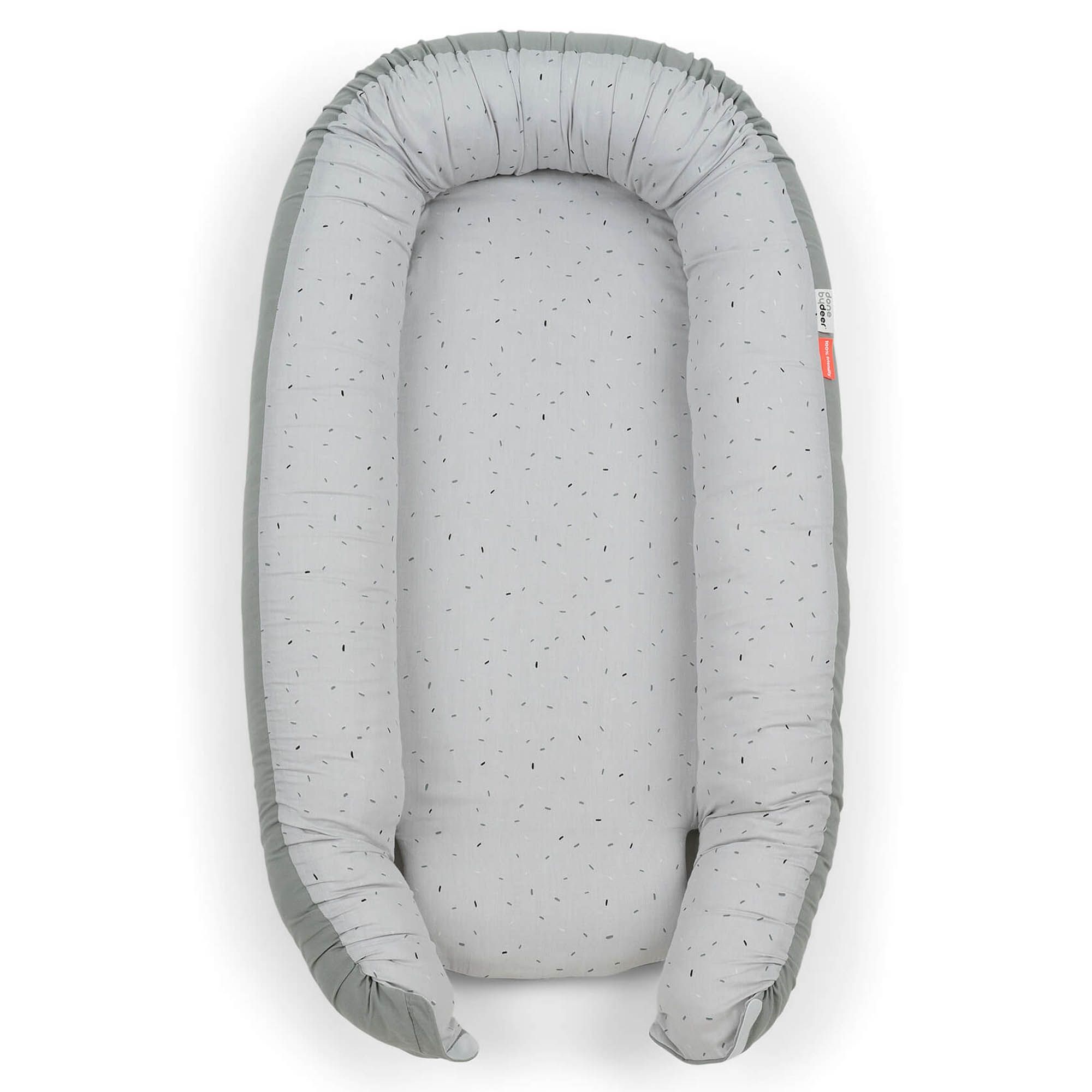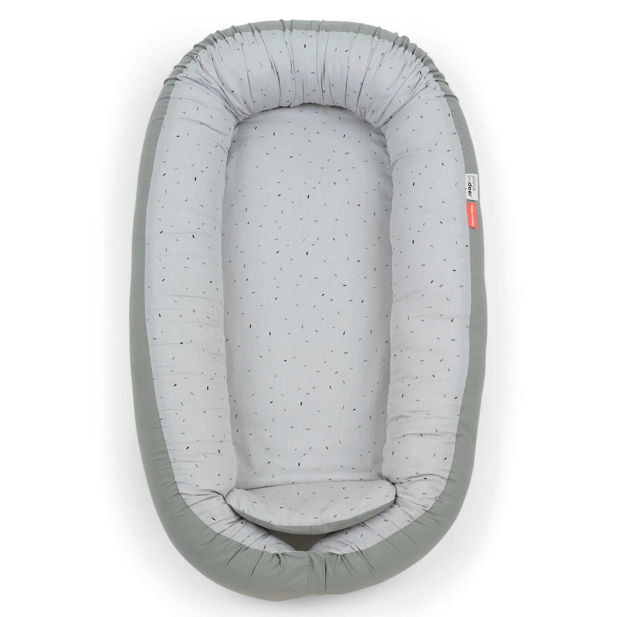 Skab et trygt og hyggeligt sted til din baby med denne bløde babynest fra Done by Deer i det fine Confetti design. Babynesten måler 85x50 cm og er ideel til både søvn, leg, hvile og mavetid.