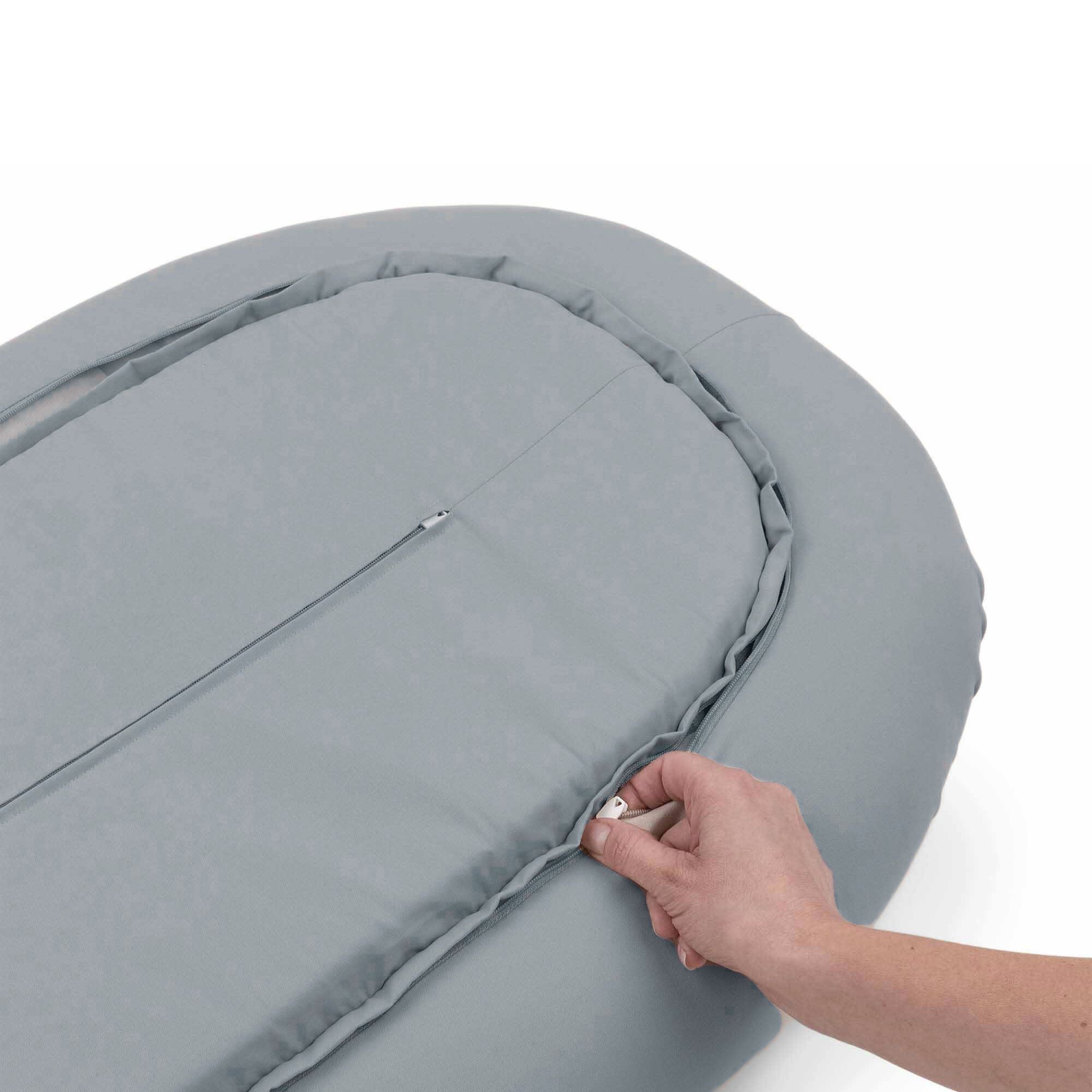 Med en praktisk, skjult YKK-lynlås kan madrassen nemt tages ud, så både betræk og fyld kan vaskes separat. Babynesten kan desuden åbnes i enden, så den kan tilpasses barnets størrelse og bruges i længere tid.