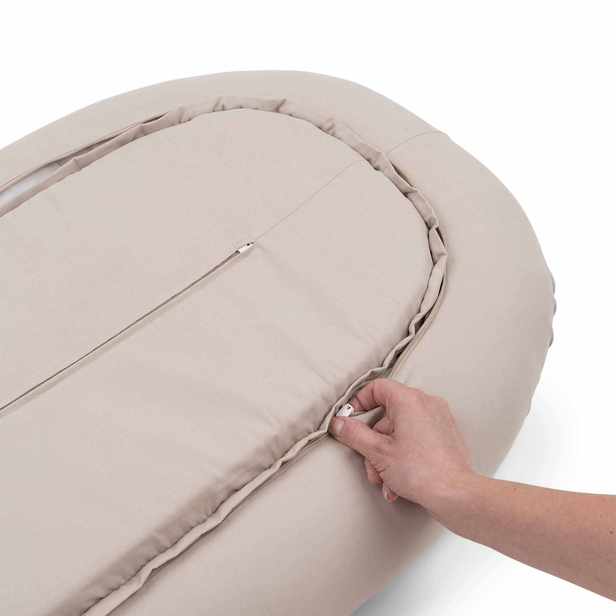 Med en praktisk, skjult YKK-lynlås kan madrassen nemt tages ud, så både betræk og fyld kan vaskes separat. Babynesten kan desuden åbnes i enden, så den kan tilpasses barnets størrelse og bruges i længere tid.
