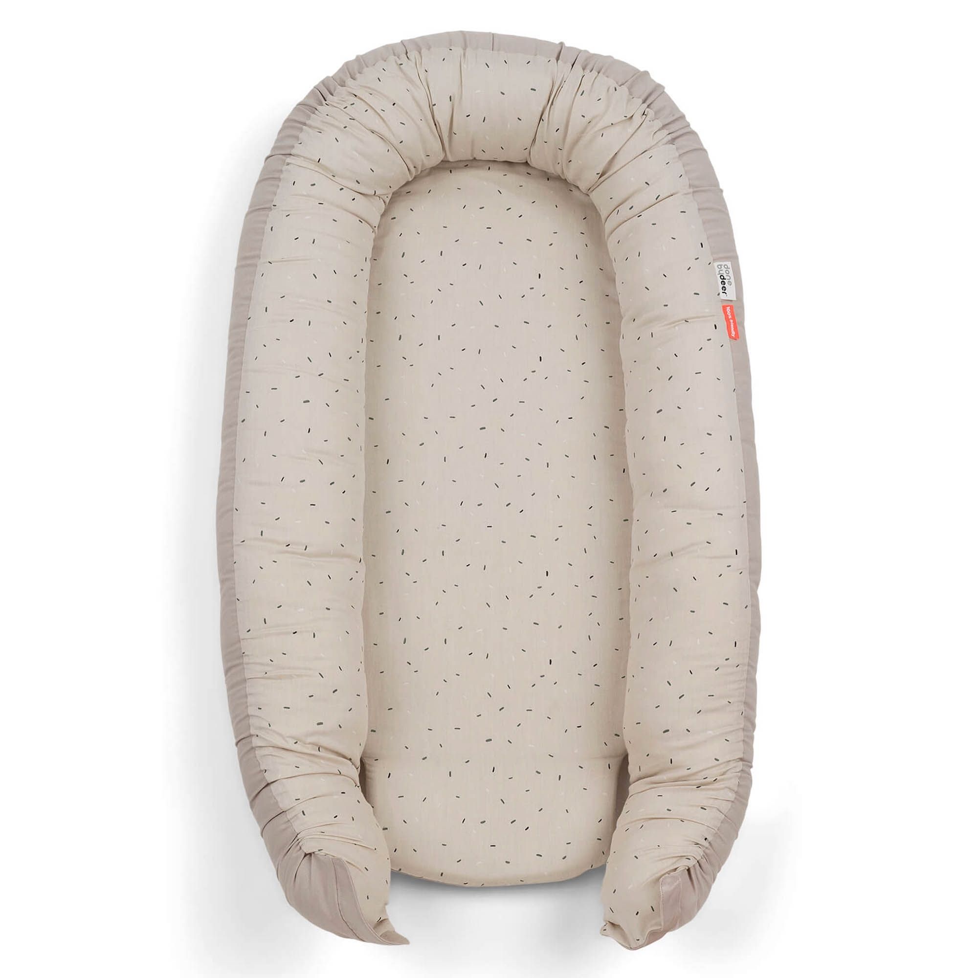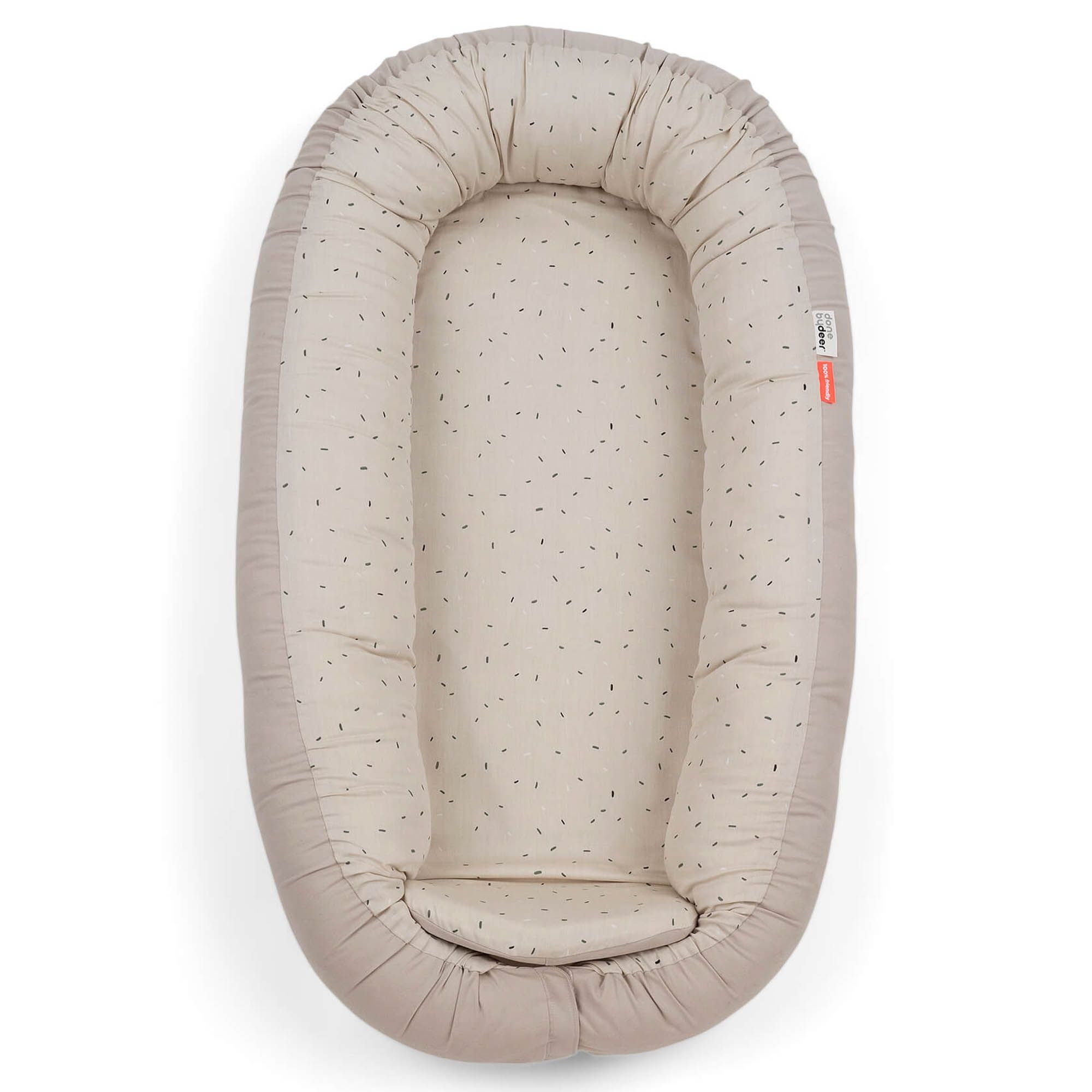 Skab et trygt og hyggeligt sted til din baby med denne bløde babynest fra Done by Deer i det fine Confetti design. Babynesten måler 85x50 cm og er ideel til både søvn, leg, hvile og mavetid.