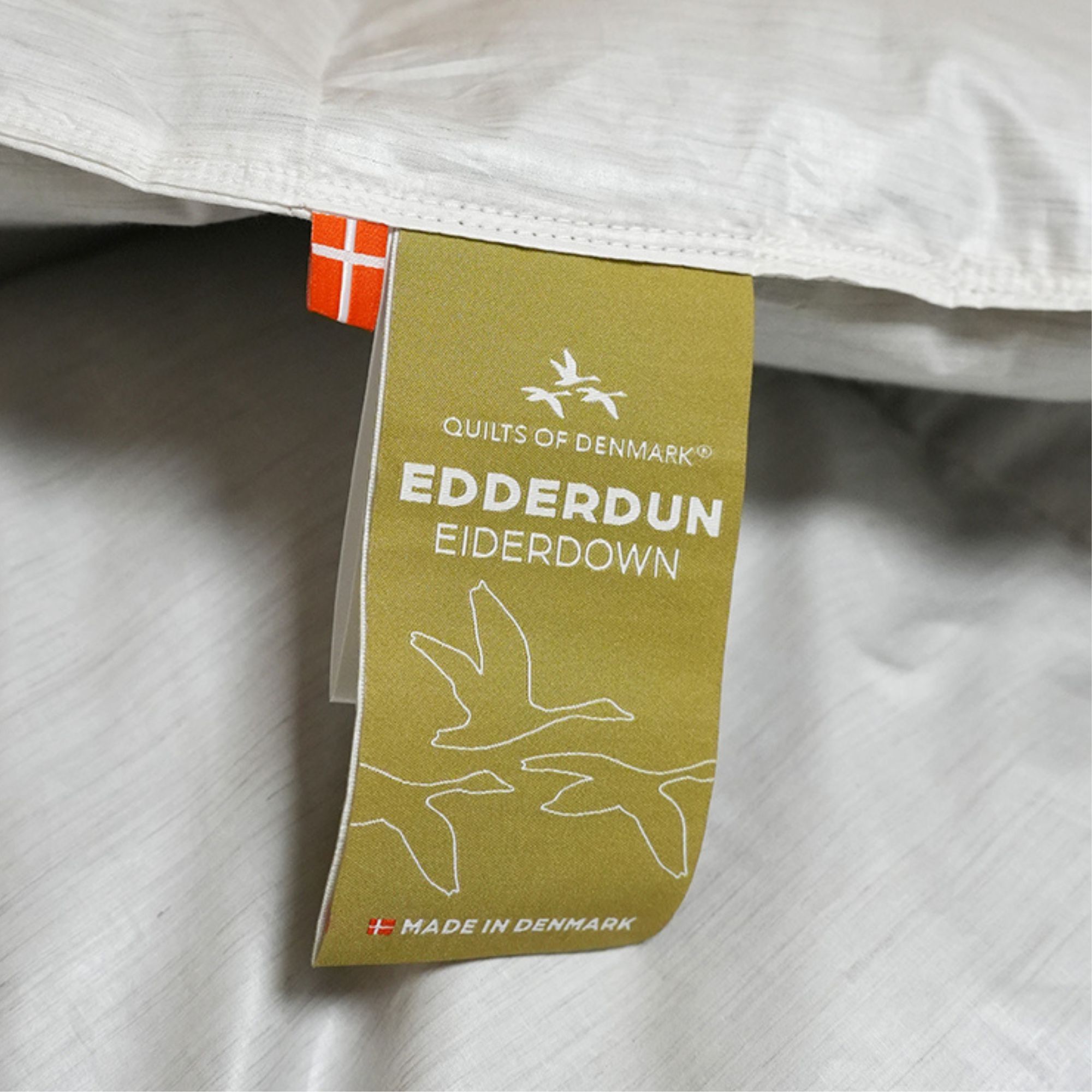 Denne luksus dyne består af 100% håndindsamlet islandske edderdun, den fineste, bedste og mest eksklusive duntype. Dunene bliver samlet direkte fra fuglens reder, så snart den efterlades af ungerne. De kostbare små dun har en unik isoleringsevne som når langt over andre almindelige dun, og så er de så lette - at de føles som varm luft. Edderdun er den dun type der har den højeste bæreevne/CUIN på 16/1100 - jo højere bæreevne, desto finere dun er der brugt. Edderdun er de fineste der findes, på verdensplan. Dette gør også de eksklusive dun til det letteste og varmeste materiale i hele verden. Edderdun griber, modsat andre duntyper, fast i hinanden så de ikke skilles ad, hvilket skaber deres utrolige isoleringsevne, samtidig med at de giver den letteste, mest luftige og fyldige dyne.