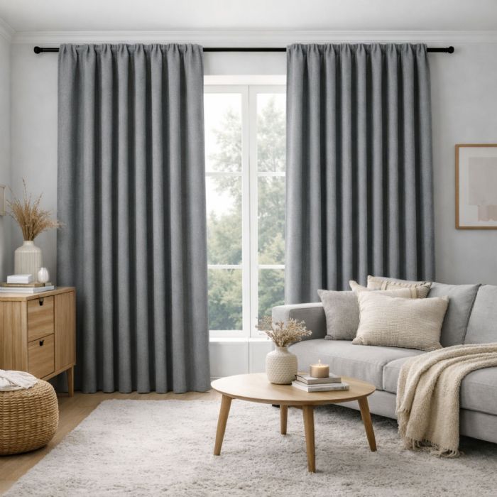 Ekstra langt gardin - 1 stk. færdigsyet gardin 140x300 cm - Grå - Tykt gardin / lysdæmpende gardin - Nordstrand Home gardinlængder med rynkebånd