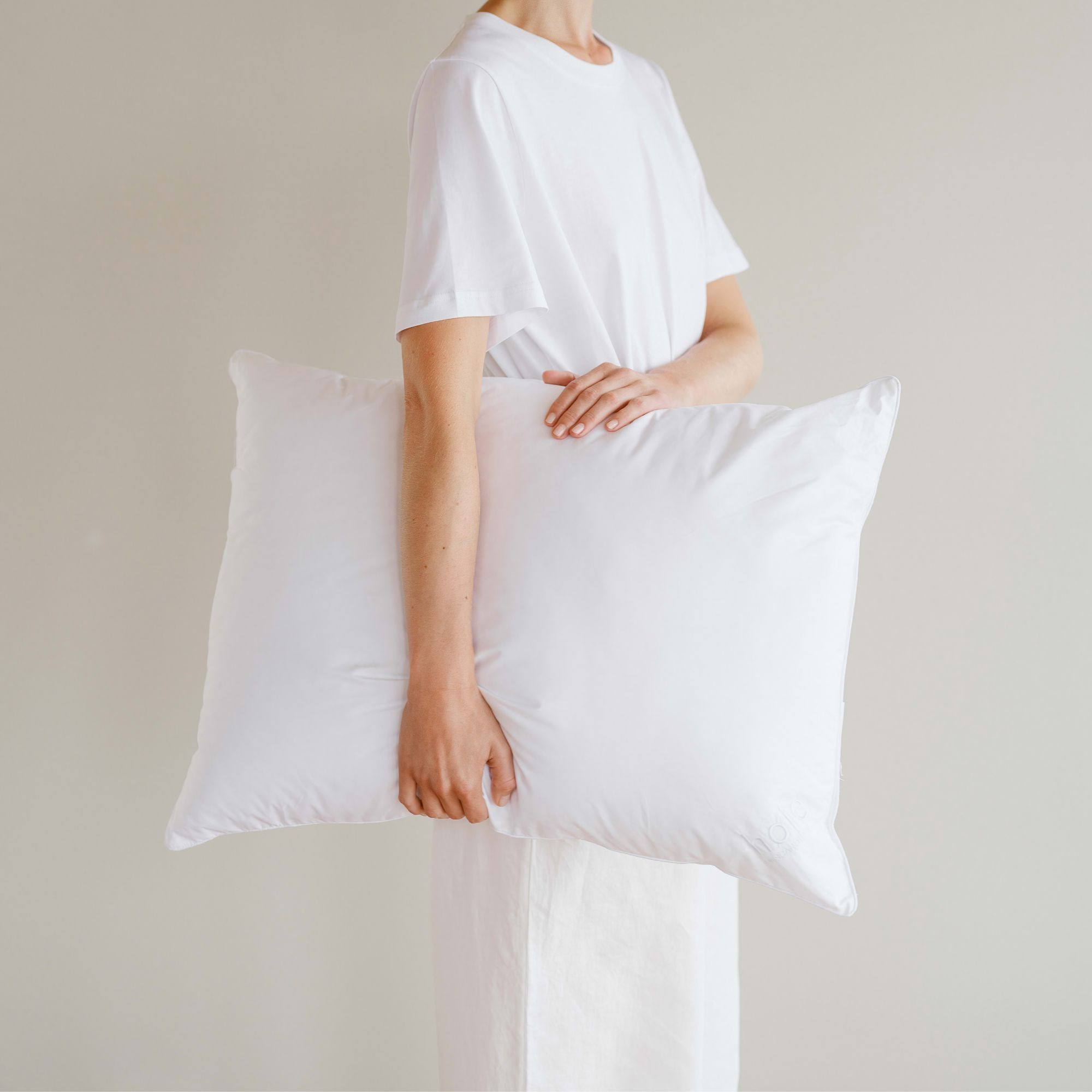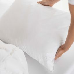 Puden kan vaskes ved 60 grader i vaskemaskine, men for længere levetid og mindre miljøbelastning anbefaler vi, at du vasker puden ved 40 grader. Vask gerne puden to til fire gange om året. Brug kun 2/3 af normal dosering af et enzymfrit vaskemiddel. Puder bør tørretumbles og rystes op af og undervejs i tørringen.