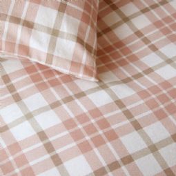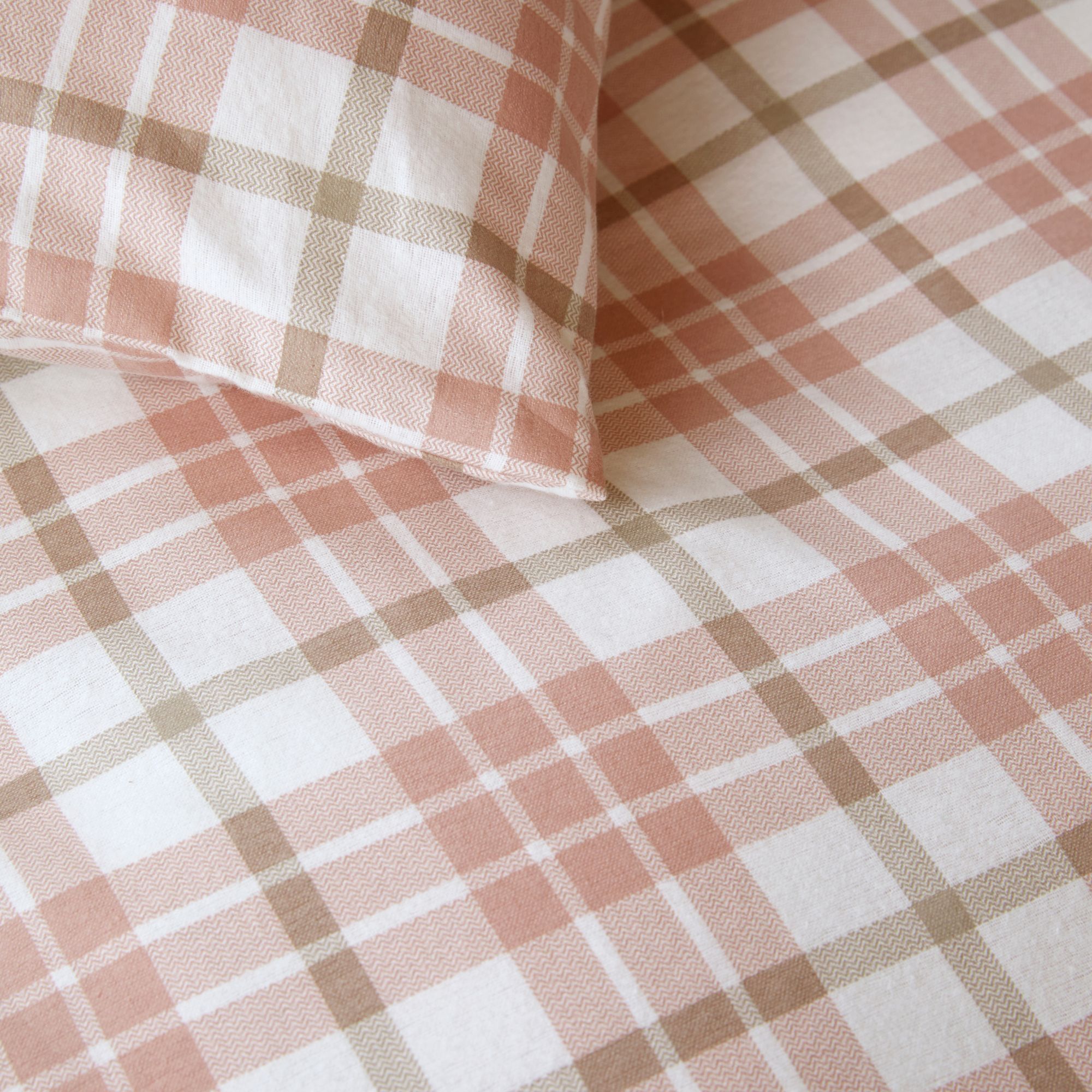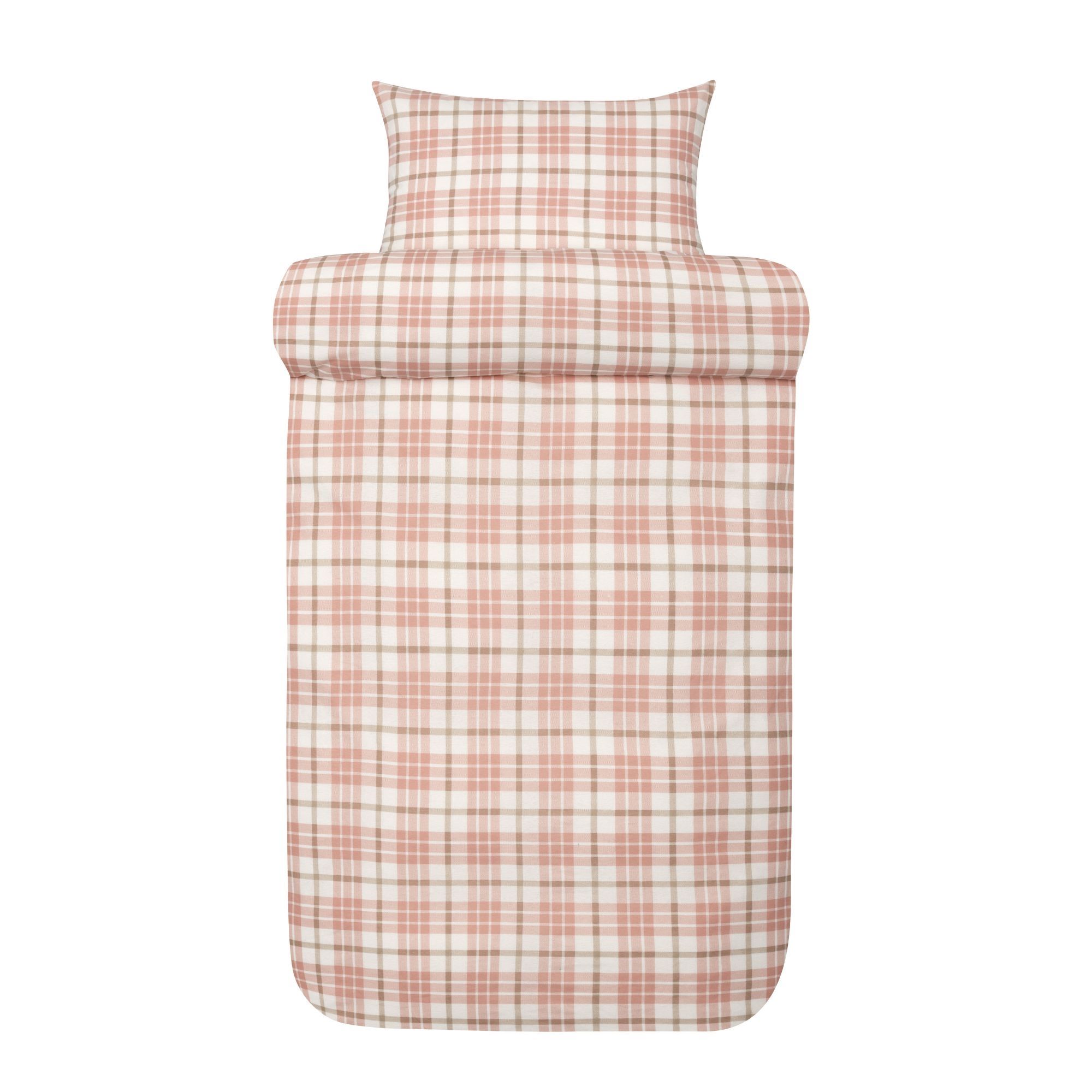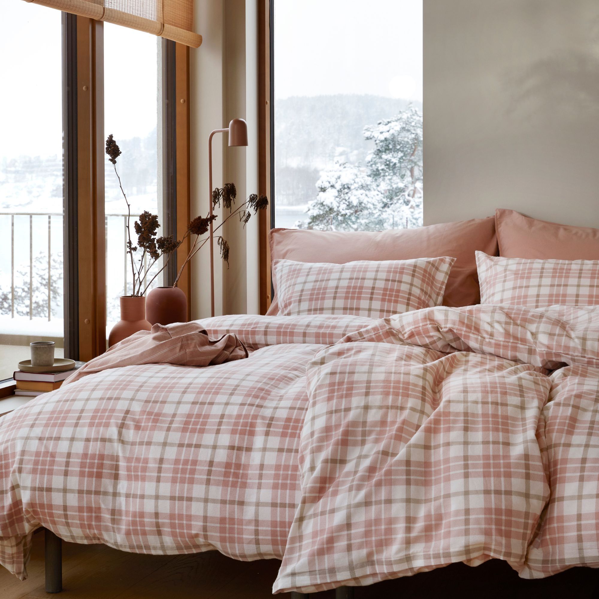 Flonel sengetøj 140x200 cm - Lyserødt ternet sengesæt - 100% bomulds flonel - Lukas Høie of Scandinavia sengelinned