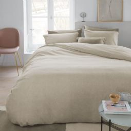 Flonel sengetøj 140x200 cm - Sandfarvet ensfarvet sengesæt - 100% bomulds flonel - Frost Beddinghouse sengelinned