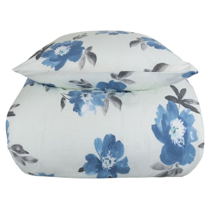 Flonel sengetøj - 140x220 cm - Blomstret sengetøj blå - 100% Bomuld - Gardenia blå - Nordstrand Home sengesæt