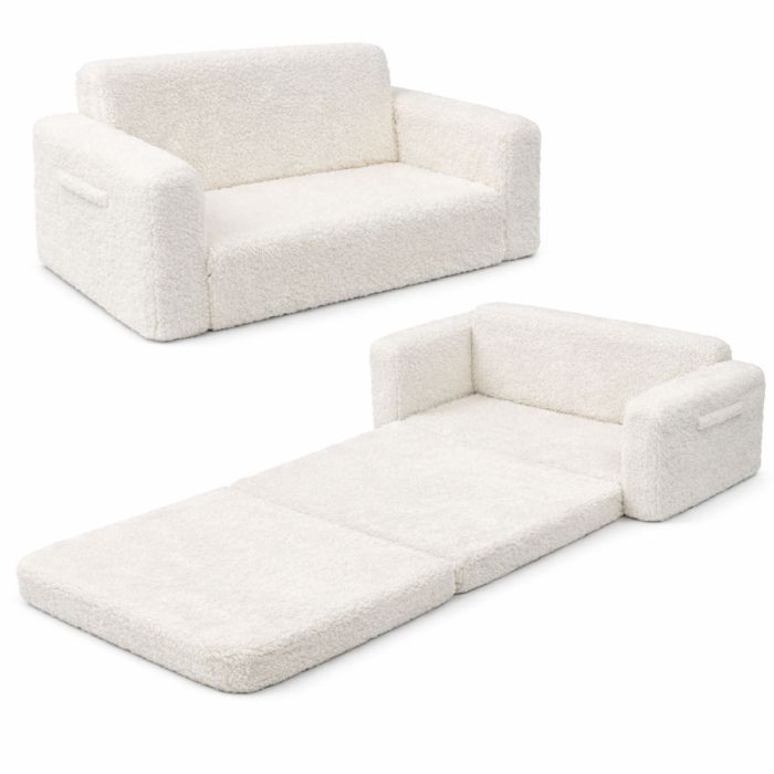 Foldesofa til børn - hyggelig fold ud børnesofa med blødt plys betræk
