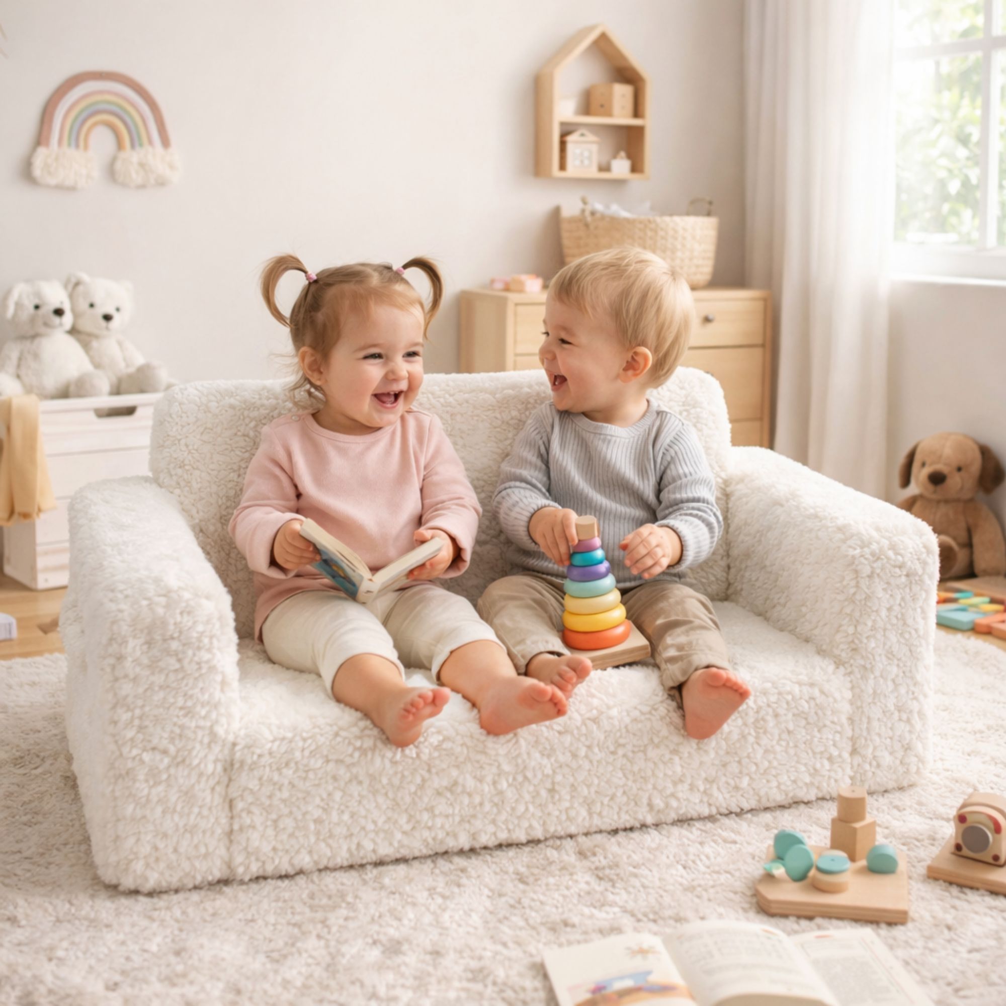 En foldesofa til børn som denne kombinerer komfort, leg og funktionalitet i ét møbel og bliver hurtigt et naturligt samlingspunkt på børneværelset.