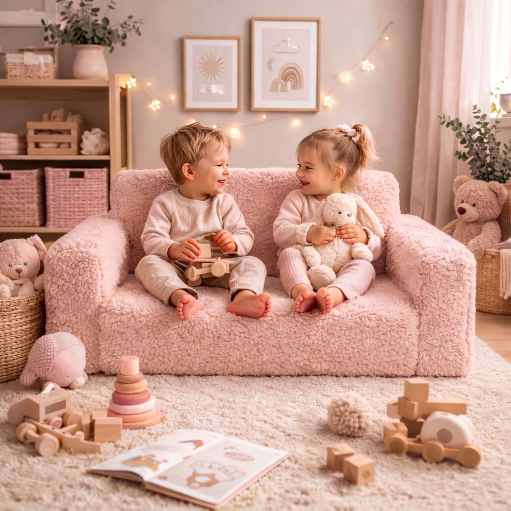 En foldesofa til børn som denne kombinerer komfort, leg og funktionalitet i ét møbel og bliver hurtigt et naturligt samlingspunkt på børneværelset.