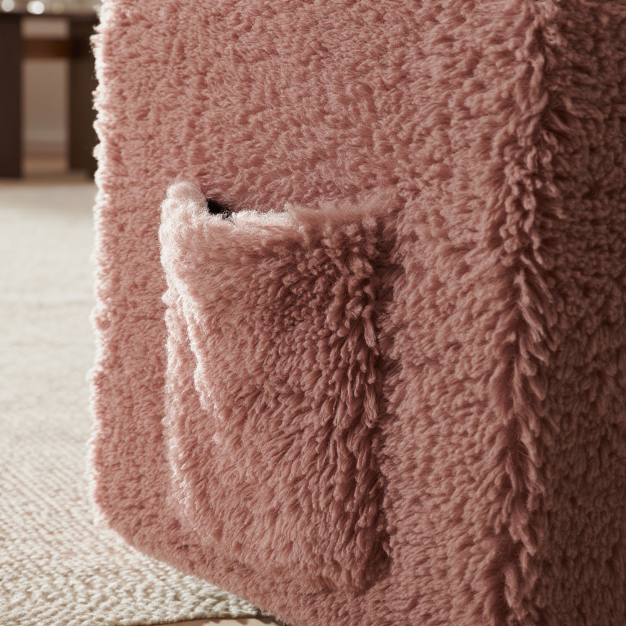 Skab et hyggeligt og funktionelt hjørne på børneværelset med denne fine foldesofa i plys til børn fra Nordstrand Home. Den utrolig bløde børnesofa er lavet i et lyserødt plys betræk, der passer perfekt ind i et nordisk inspireret børneværelse eller stue. Her får du en praktisk 2-i-1 løsning, der både fungerer som sofa til børn i hverdagen og som udklappelig madras, når der skal slappes af, læses bog eller tages en lille lur.